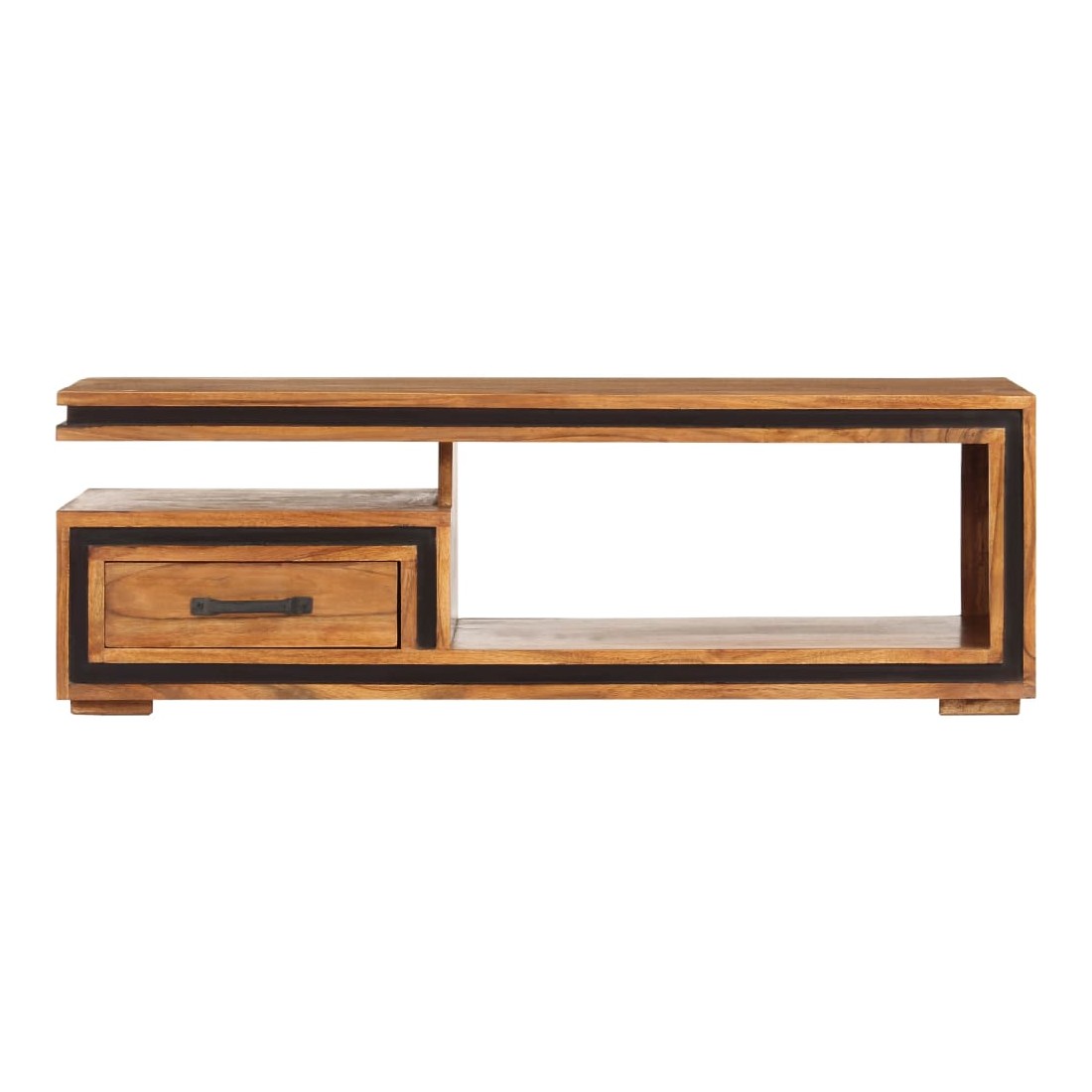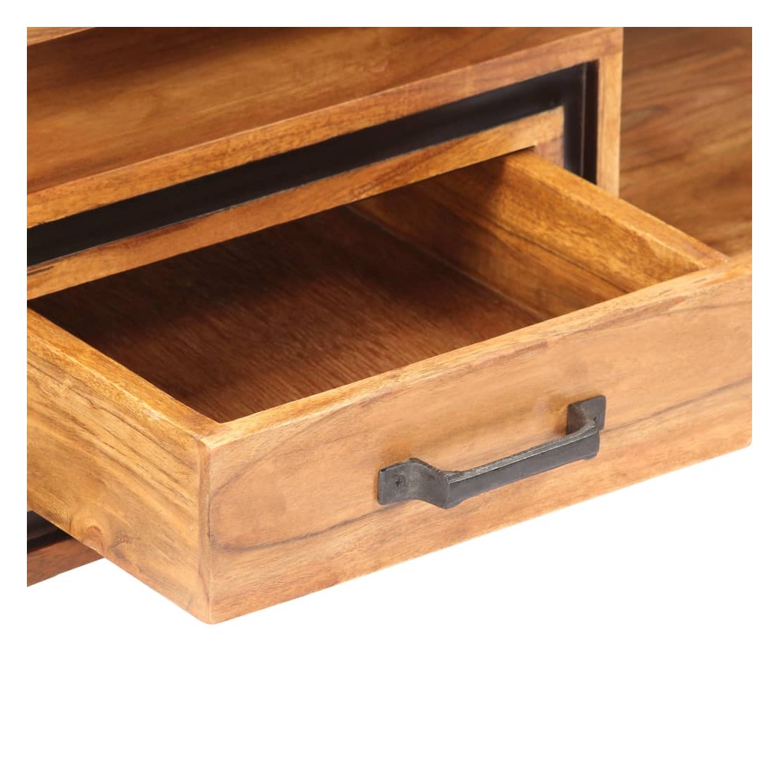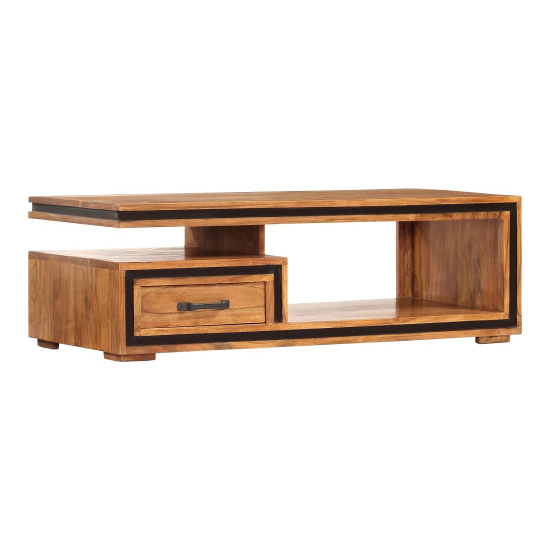 Cette table basse sera un supplément indémodable à votre décoration intérieure ! La table de canapé est faite de bois d'acacia solide avec une finition au toucher miel, ce qui la rend très durable et stable. Le bois d'acacia solide est un bois dur avec des beaux grains qui durera de nombreuses années. Semblable au bois d'acacia solide, connu sous le nom de bois de rose ou de palissandre, est également connu pour ses grains riches. Chaque étape du processus est réalisée avec le plus grand soin, que ce soit le polissage, la peinture ou le laquage. De plus, cette table de salon comprend 1 compartiment et 1 tiroir, offrant un espace commode pour ranger vos livres, vos tasses, ainsi que divers autres objets. Remarque importante : les couleurs et les grains de bois peuvent varier d'une pièce à l'autre, ce qui rend chaque pièce unique et légèrement différente l'une de l'autre. La livraison est aléatoire, ce qui garantit l'exclusivité et l'individualité de votre produit.