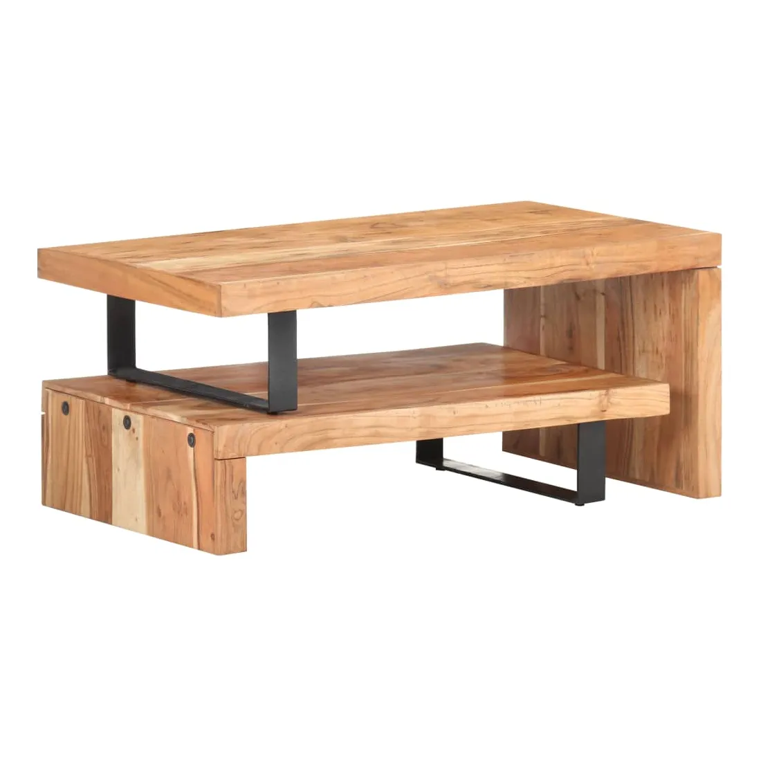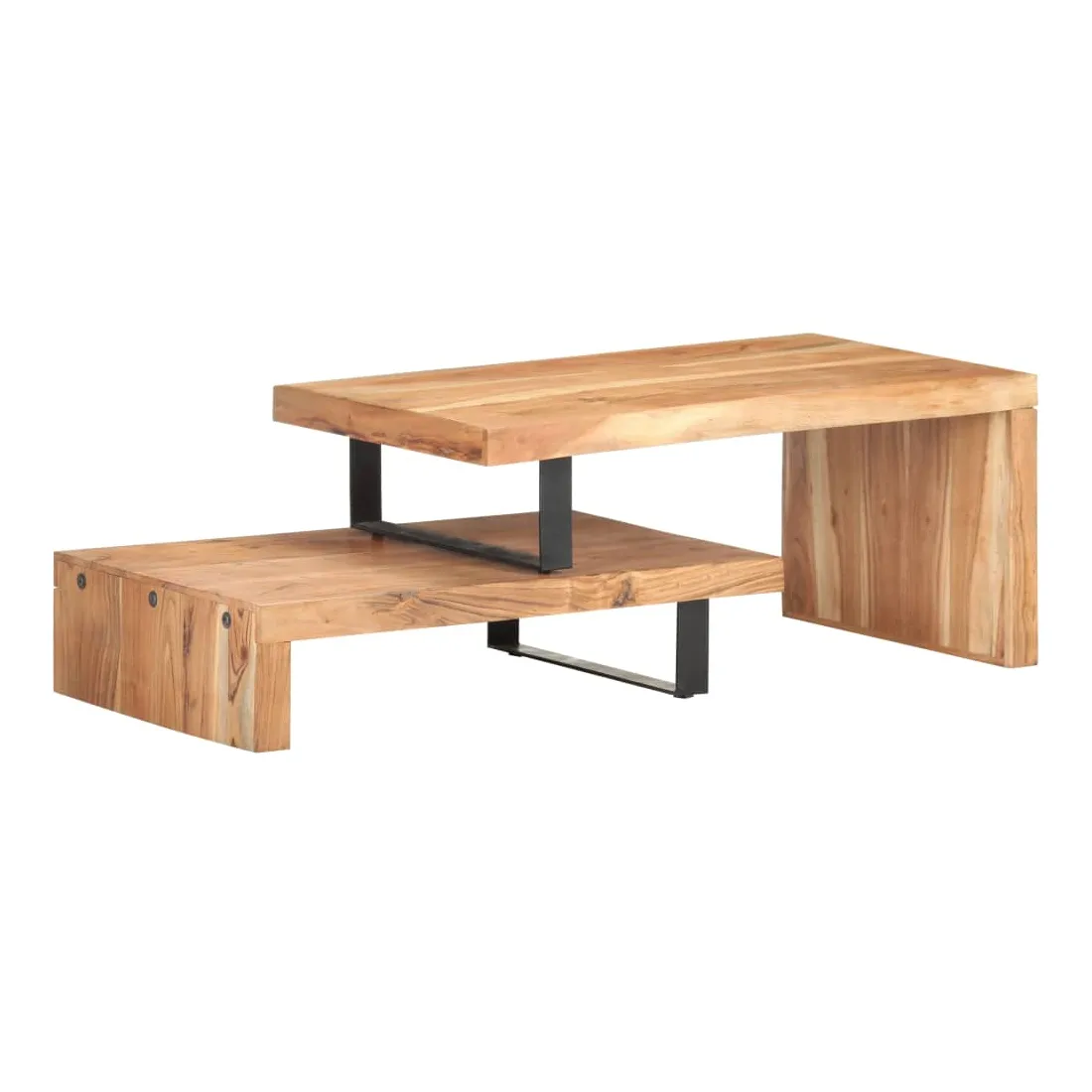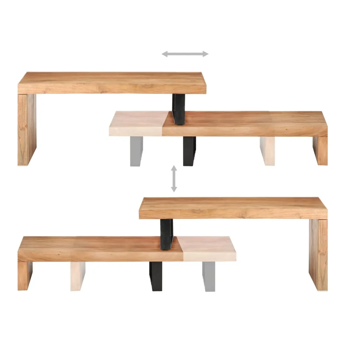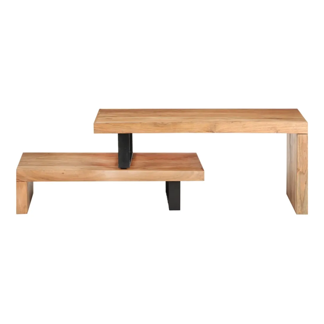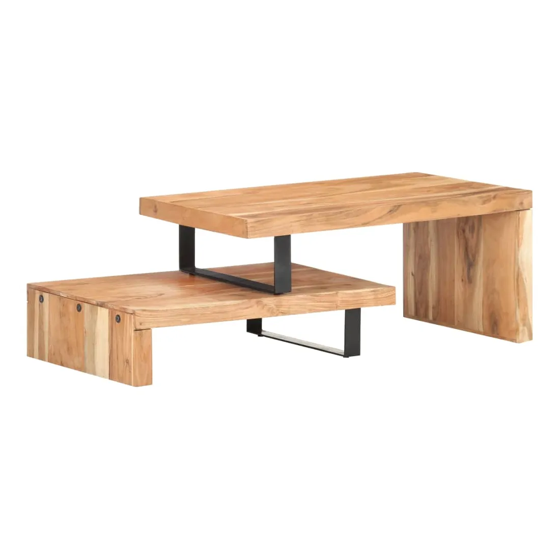 Cet ensemble de table basse, composé d'une table supérieure et d'une table inférieure, est parfait pour apporter une présence classique à votre salon ou bureau. La table centrale est faite de bois d’acacia massif, un bois dur avec des grains denses. Cette table de canapé au design magnifique est stable, durable et attire l'attention. De plus, le savoir-faire exquis et les beaux grains de bois rendent chaque pièce légèrement différente l'une de l'autre. L'ensemble de table contient deux parties, au design unique. Les pieds en fer enduit de poudre ajoutent à sa stabilité et robustesse. Son dessus de table robuste est parfait pour placer des boissons, des bols à fruits ou des ornements. De plus, l'étagère sous le dessus de table offre suffisamment d'espace pour garder vos magazines, livres et autres petits articles essentiels organisés et à portée de main. En outre, l'ensemble de table basse est réglable en longueur pour s'adapter à d'autres configurations. Remarque importante : les couleurs varient d'une pièce à l'autre, rendant chaque pièce unique. La livraison est aléatoire, garantissant l'exclusivité et l'individualité de votre produit.