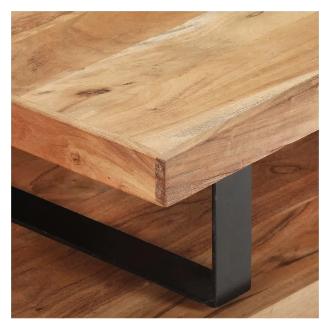 - Matériau : bois d'acacia massif avec une finition naturelle, fer enduit de poudre