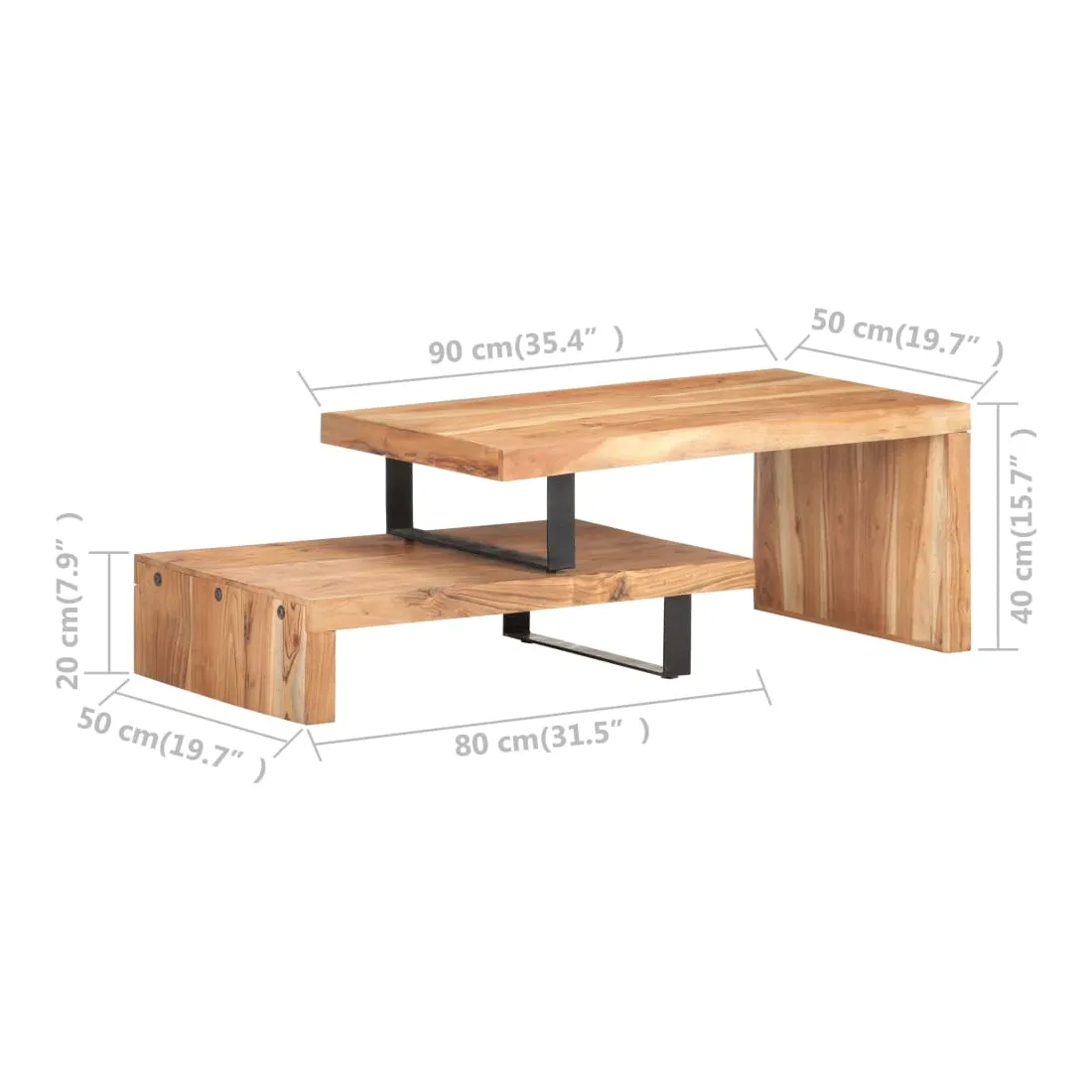 - Dimensions de la table inférieure : 80 x 50 x 20 cm (L x l x H)