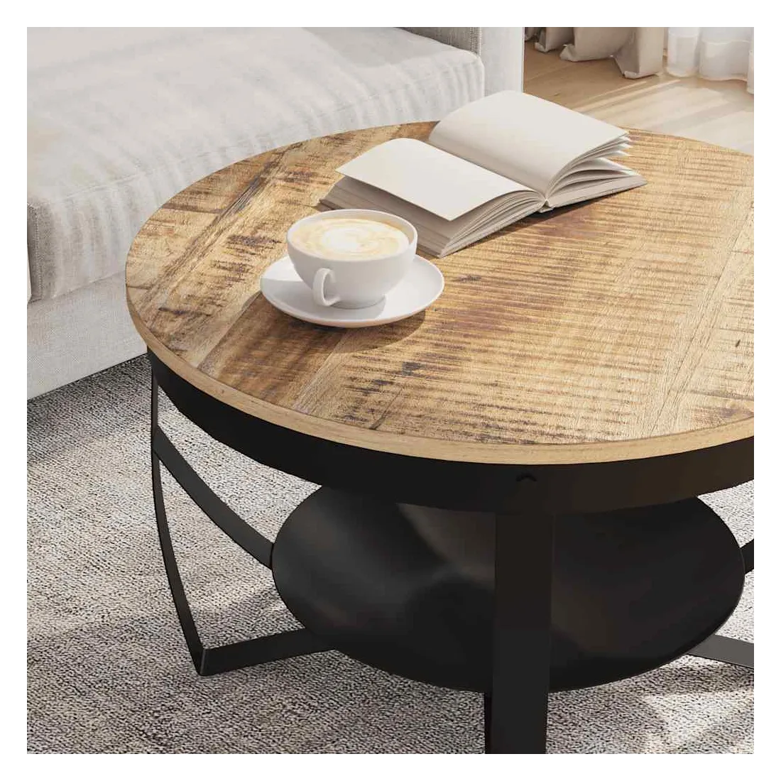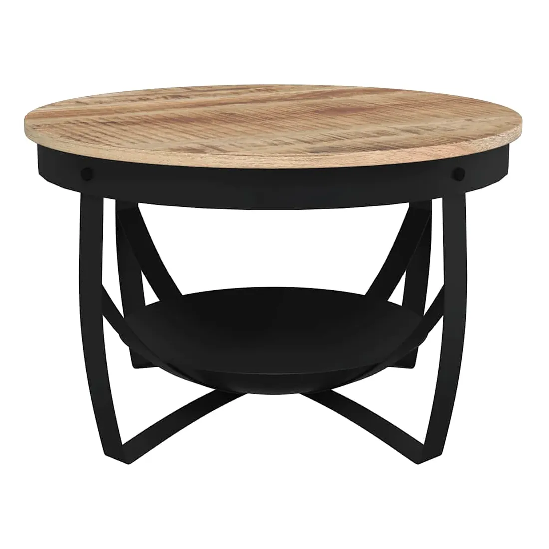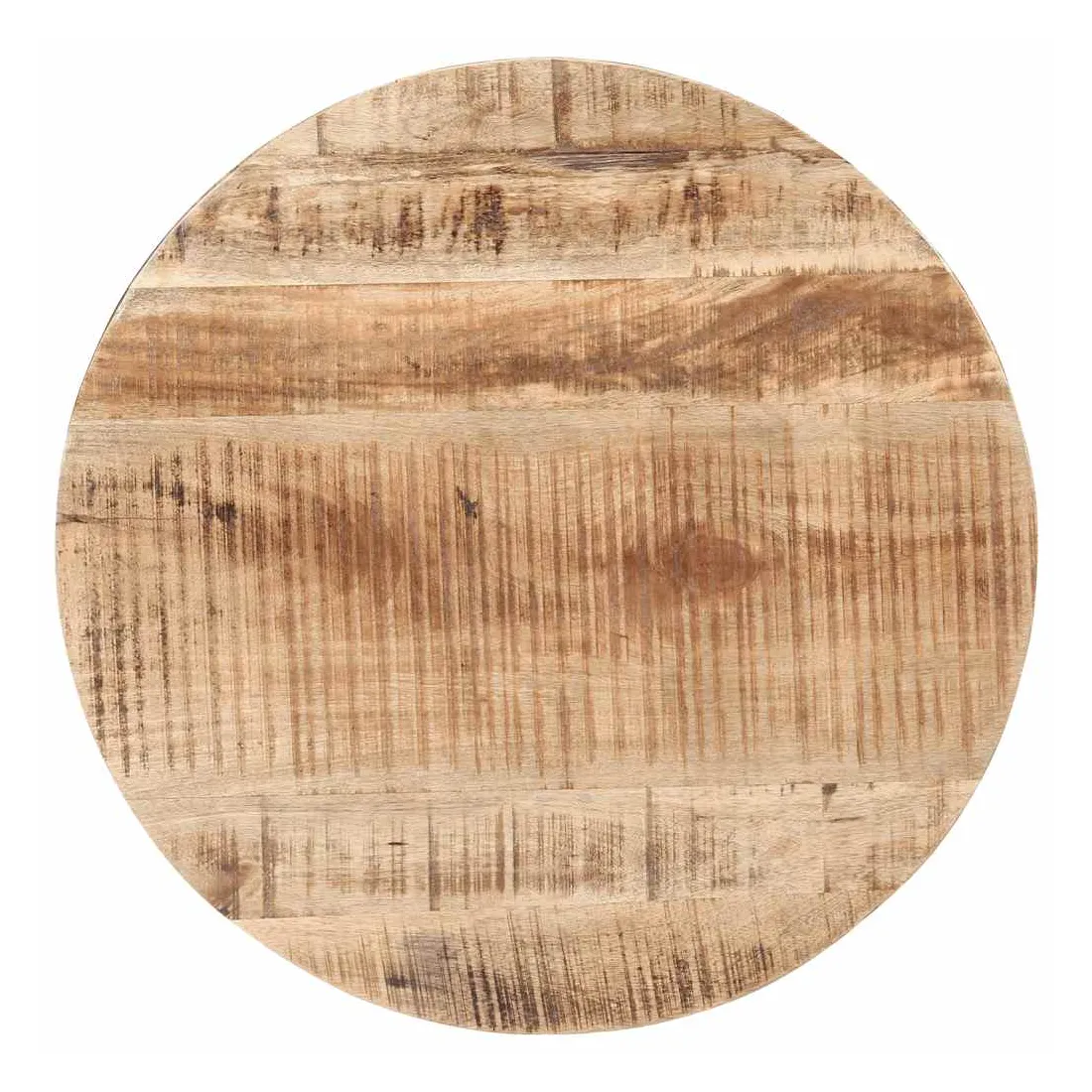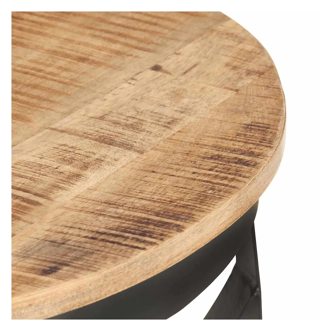 - Matériau : bois de manguier brut avec une finition naturelle, fer avec revêtement en poudre noire