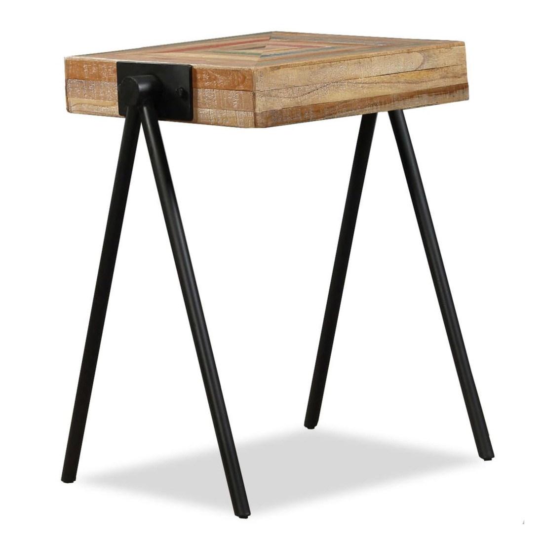 Cette table d'appoint attrayante et industrielle sera un accessoire intemporel pour votre maison. Les dessus de table en bois offrent une surface stable et sûre sur laquelle vous pouvez placer vos boissons, des vases, des bols de fruits ou des ornements. Elle peut être utilisée aussi comme table basse. Cette table d'appoint est faite de teck récupéré, ce qui signifie que chaque meuble est unique et légèrement différent l'un de l'autre. Le teck recyclé est solide, stable, durable et beau. Les pieds en acier fort rendent la table basse très robuste et durable et ajoutent à son style industriel spectaculaire. L'assemblage est facile. Remarque importante : Les couleurs varient d'un meuble à l'autre, rendant chacune de nos tables basses unique ; la livraison est aléatoire.
