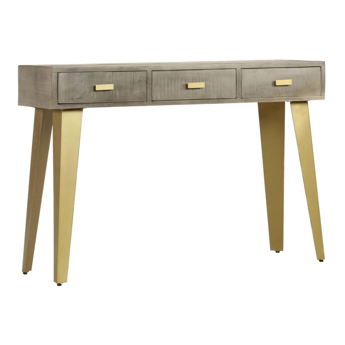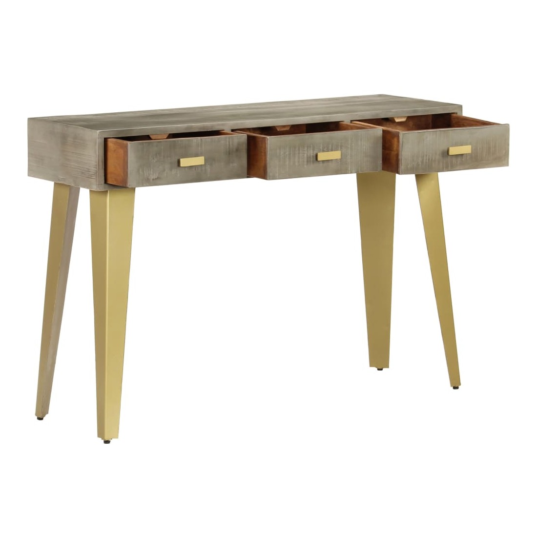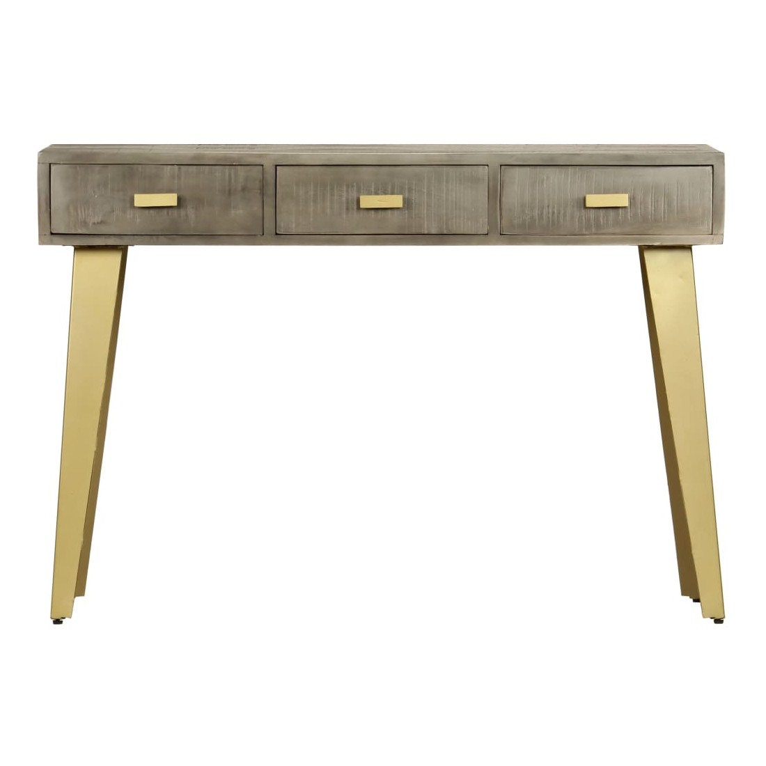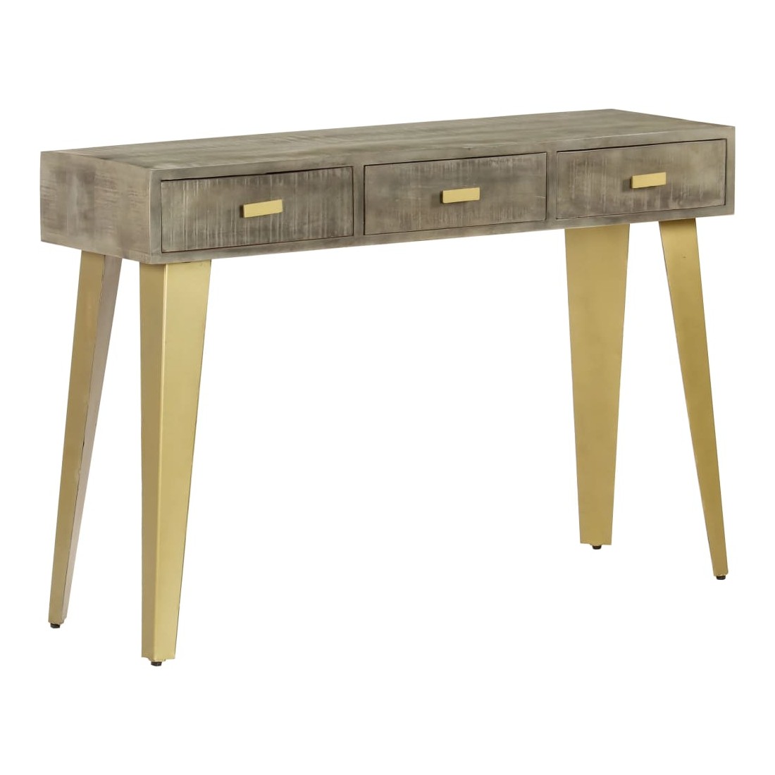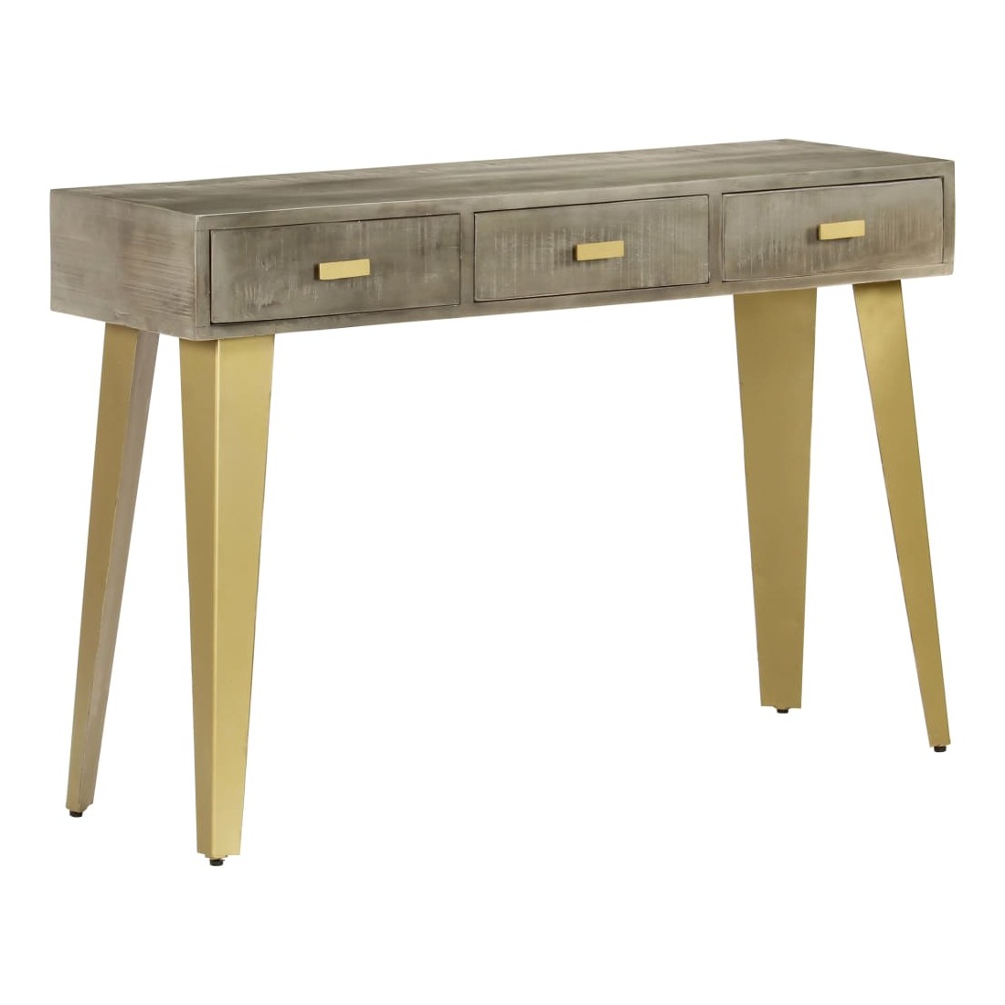 Cette table console a un charme vintage qui apportera une touche intemporelle à votre maison. Elle a 3 tiroirs qui seront idéaux pour garder organisés et à portée de main vos livres, magazines, ainsi que des petits articles. La table d'entrée est en bois massif de manguier qui est solide, stable, durable et beau. En outre, l'artisanat ajoute à son style rétro spectaculaire. Chaque étape du processus est réalisée avec le plus grand soin, que ce soit le polissage, la peinture ou le laquage. De plus, les pieds en acier avec revêtement en laiton ajoutent à la stabilité de la table console et à son charme unique. Ce produit est facile à assembler. Veuillez noter que la couleur du bois peut varier d'une pièce à l'autre, ce qui rend chaque pièce unique et légèrement différente l'une de l'autre. La livraison est aléatoire.