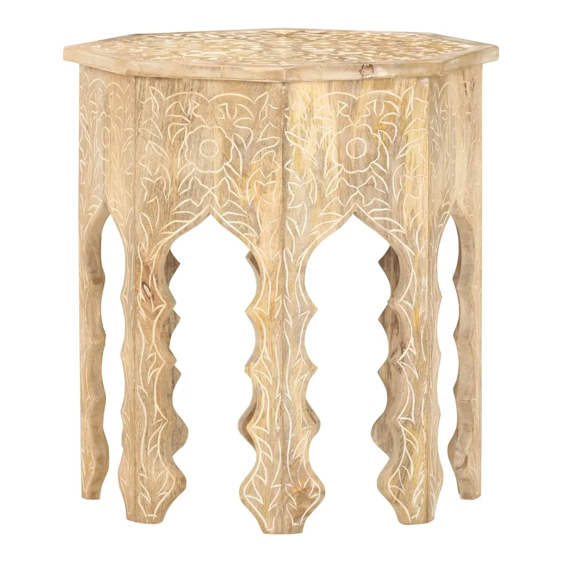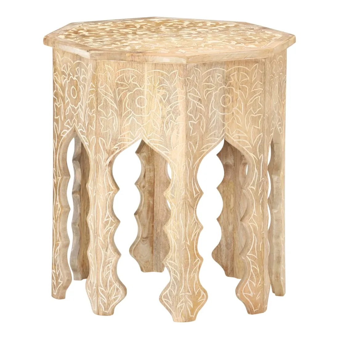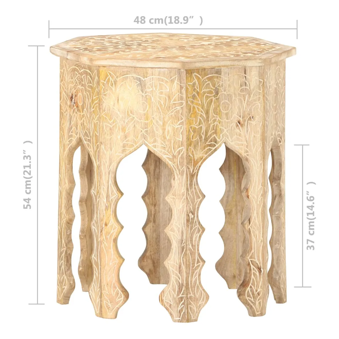 Un élément essentiel de tout espace de vie : les tables d’appoint ! Apportez cette élégante table d’appoint en bois à votre maison dès maintenant ! Le bois de manguier massif est un bois dur tropical. Il a la force de soutenir le poids, et résiste également à l’usure du temps. De plus, l’artisanat exquis et les beaux grains de bois font chaque pièce de table de canapé légèrement différente l'une de l'autre. Le dessus solide offre une surface stable et sécurisée pour placer vos essentiels. De plus, le motif sculpté à la main ajoute à sa beauté. Remarque importante : les couleurs et les grains peuvent varier d'une pièce à l'autre, ce qui rend chaque table de salon unique et légèrement différente l'une de l'autre. La livraison est aléatoire.