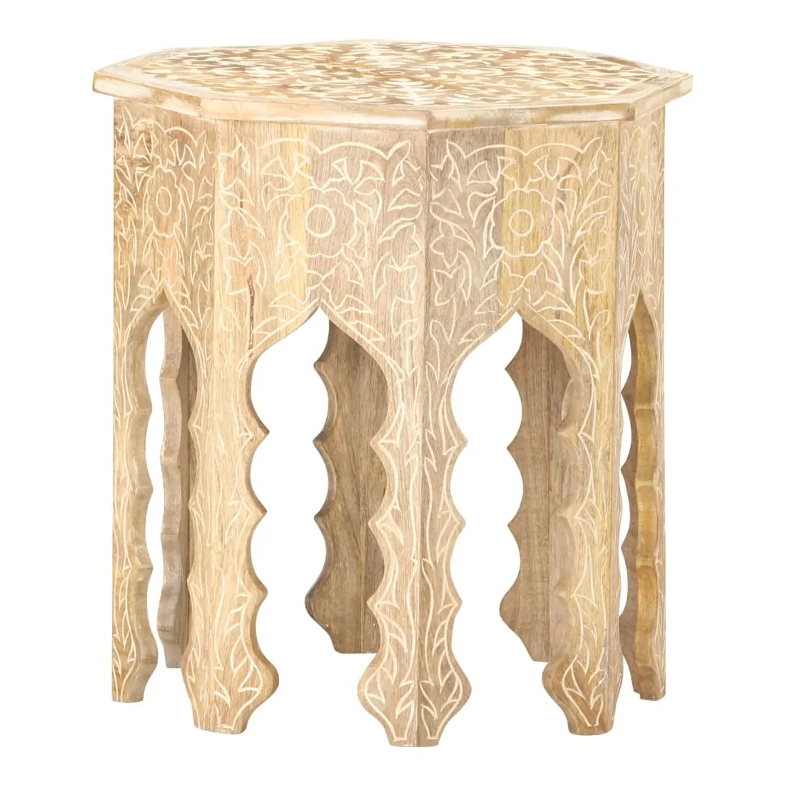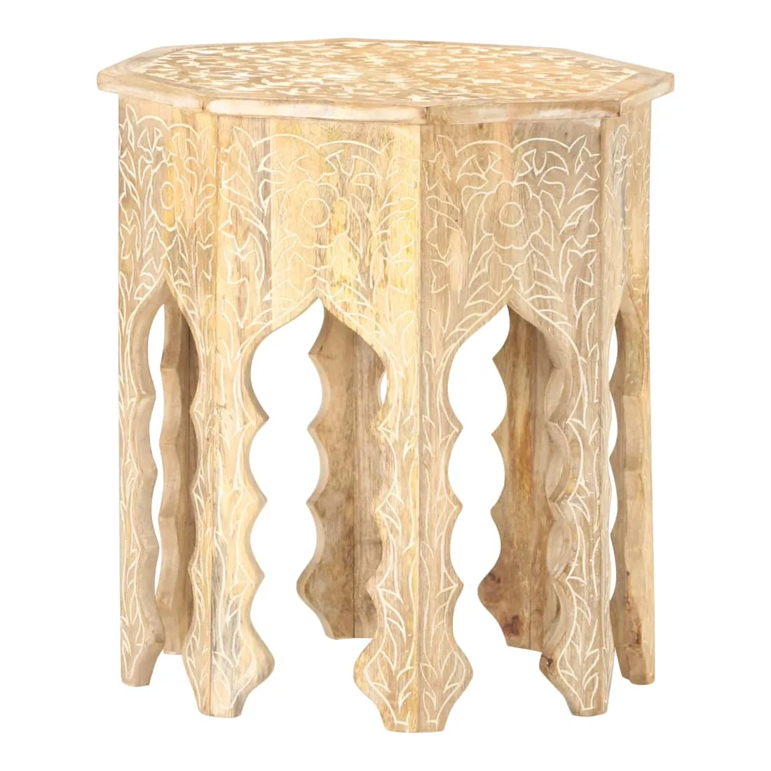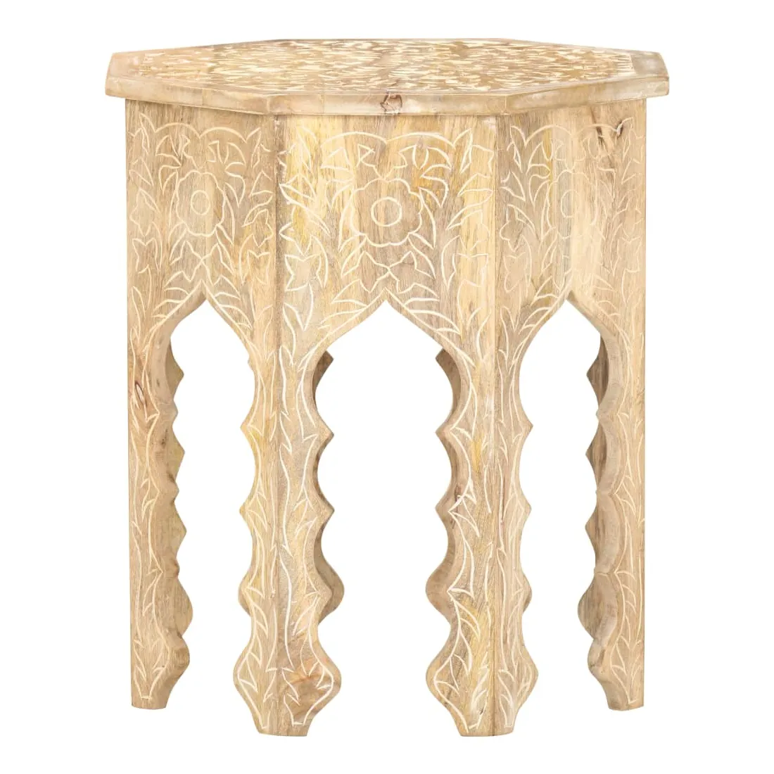 Un élément essentiel de tout espace de vie : les tables d’appoint ! Apportez cette élégante table d’appoint en bois à votre maison dès maintenant ! Le bois de manguier massif est un bois dur tropical. Il a la force de soutenir le poids, et résiste également à l’usure du temps. De plus, l’artisanat exquis et les beaux grains de bois font chaque pièce de table de canapé légèrement différente l'une de l'autre. Le dessus solide offre une surface stable et sécurisée pour placer vos essentiels. De plus, le motif sculpté à la main ajoute à sa beauté. Remarque importante : les couleurs et les grains peuvent varier d'une pièce à l'autre, ce qui rend chaque table de salon unique et légèrement différente l'une de l'autre. La livraison est aléatoire.