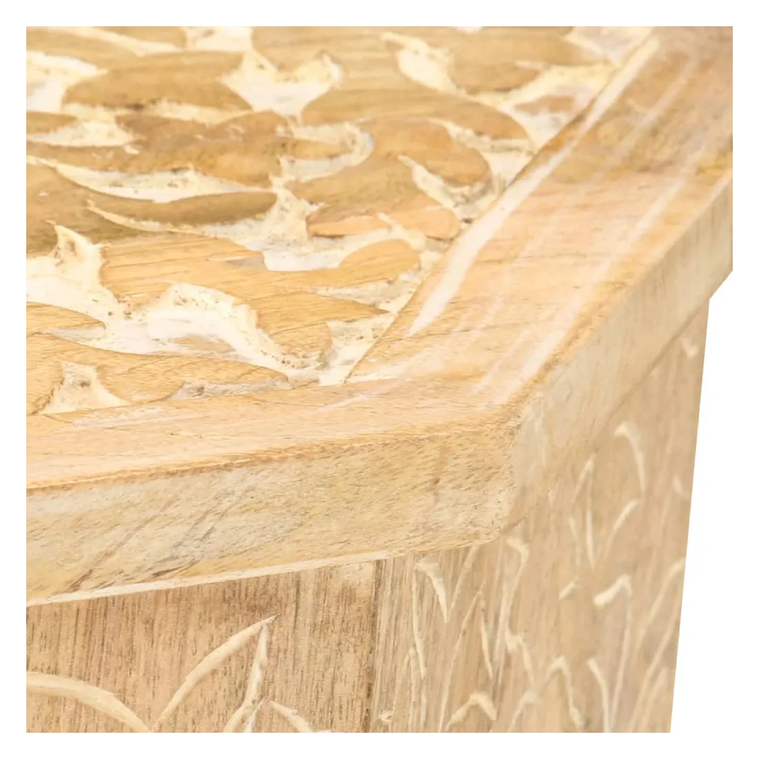 - Matériau : bois de manguier massif avec une finition blanchie à la chaux