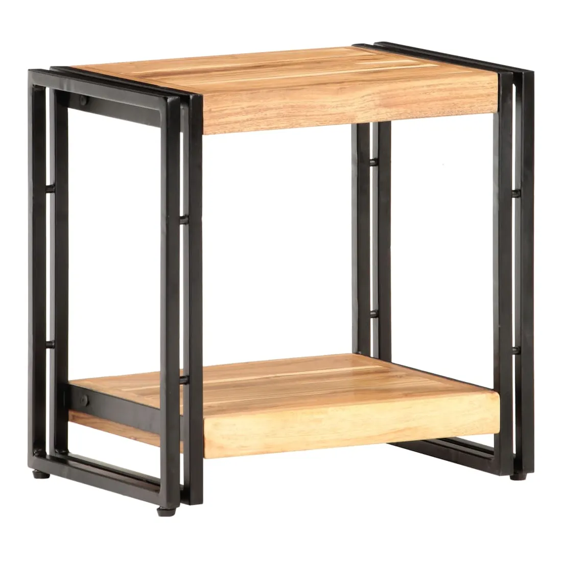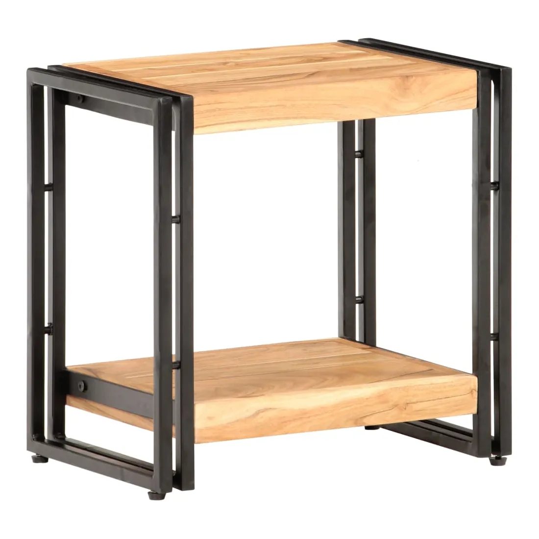 vidaXLCette table d’appoint en bois avec un style industriel fait un excellent supplément à votre espace de vie. La table de canapé est faite de bois d'acacia massif, ce qui la rend stable et durable. Le savoir-faire artisanal et les belles veines du bois rendent chaque meuble unique et légèrement différent l'un de l'autre. Le dessus robuste peut être utilisé pour ranger vos objets décoratifs. L’étagère de rangement offre également beaucoup d’espace. Cette table d’appoint peut également servir de table de chevet. Remarque importante : les couleurs et les grains varient d'une pièce à l'autre, rendant chaque pièce unique ; la livraison est aléatoire.