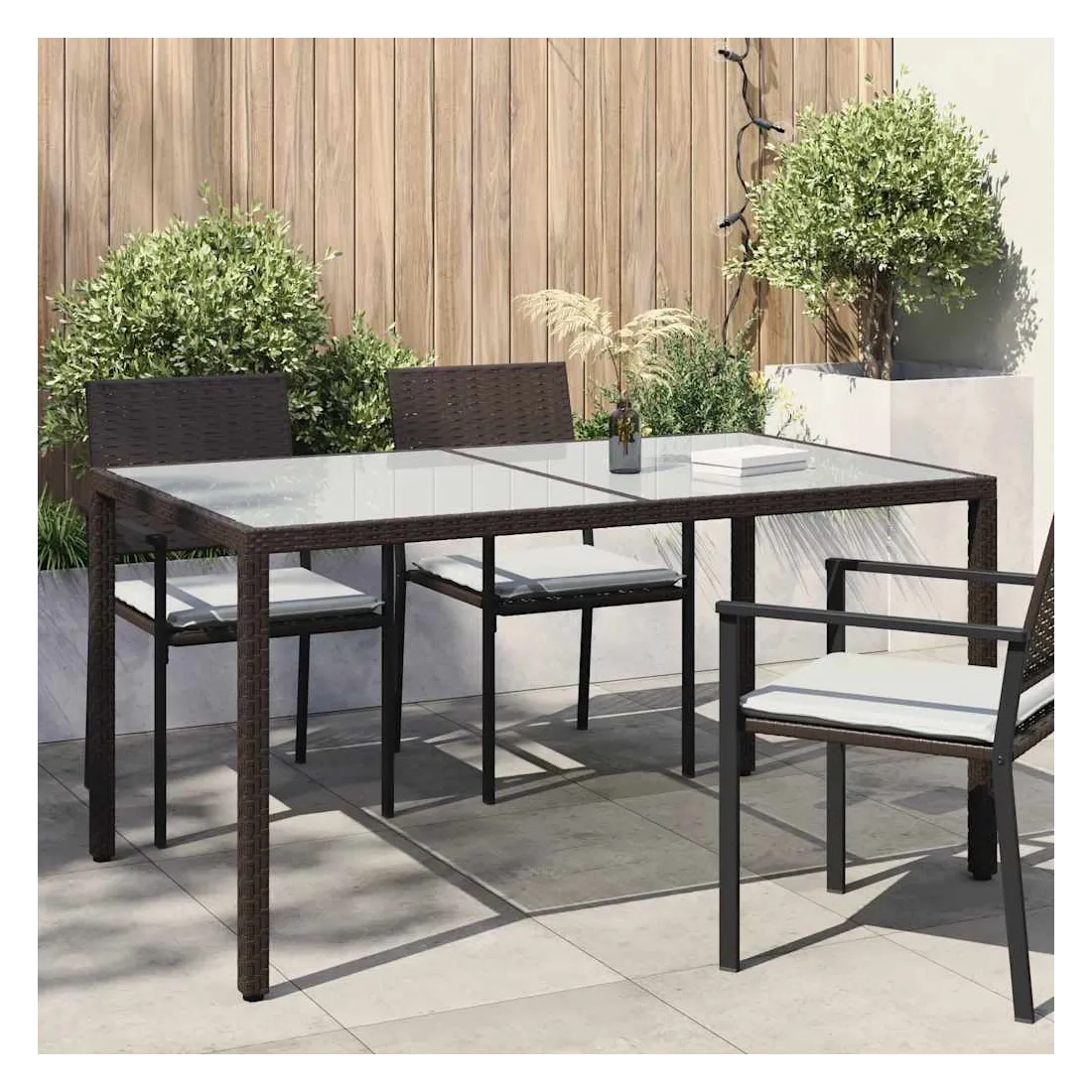 Combinant à la fois style et fonction, cette table de jardin en résine tressée sera certainement la pièce maîtresse de votre jardin, patio ou tout autre espace de vie. Dotée d'un cadre en acier enduit de poudre et enveloppé de résine tressée, cette table d'extérieur est solide et stable. De plus, le dessus de table est en verre trempé, ce qui le rend facile à nettoyer. Grâce à sa construction légère, la table de jardin est facile à déplacer. Remarque : afin de prolonger la durée de vie des meubles d'extérieur, nous vous recommandons de les protéger avec une housse imperméable.