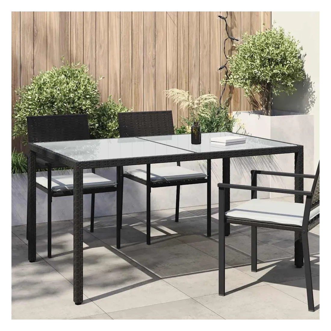 Combinant à la fois style et fonction, cette table de jardin en résine tressée sera certainement la pièce maîtresse de votre jardin, patio ou tout autre espace de vie. Dotée d'un cadre en acier enduit de poudre et enveloppé de résine tressée, cette table d'extérieur est solide et stable. De plus, le dessus de table est en verre trempé, ce qui le rend facile à nettoyer. Grâce à sa construction légère, la table de jardin est facile à déplacer. Remarque : afin de prolonger la durée de vie des meubles d'extérieur, nous vous recommandons de les protéger avec une housse imperméable.