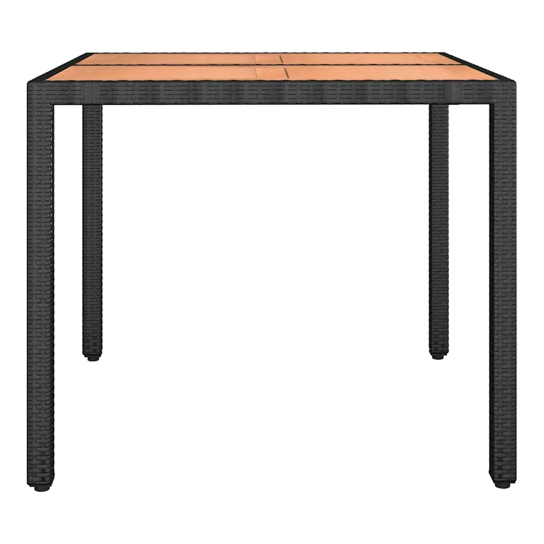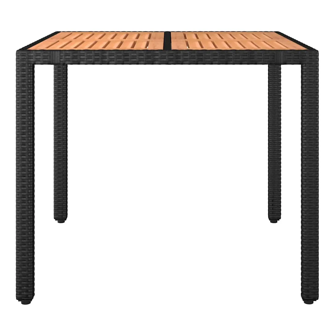 Cette table de jardin avec dessus en bois, conçue avec des lignes épurées et simples, est un excellent choix pour votre jardin, terrasse et tout autre espace extérieur. Matériau durable : la résine tressée, également connue sous le nom de rotin poly, résiste aux intempéries et est facile à nettoyer. Elle reste belle à l'extérieur pendant une longue période. Elle est plus économique que d'autres matériaux, tout en offrant une excellente qualité, une commodité et un aspect esthétique.Cadre stable : l'acier est un matériau exceptionnellement dur et résistant. Il offre robustesse et stabilité.Dessus de table en bois : le dessus de table en bois d'acacia massif est parfait pour placer des boissons, de la nourriture et des décorations. Il est beau en apparence et facile à nettoyer.Design résistant à l'eau : fabriqué en matériau résistant à l'eau, ce produit peut résister à l'humidité et au temps pluvieux. Il peut également être facilement nettoyé avec un chiffon humide en cas de besoin. Bon à savoir :Pour faciliter au maximum le montage, chaque produit est livré avec des instructions. Remarque :Pour que vos meubles d'extérieur restent beaux, nous vous recommandons de les protéger avec une housse imperméable.