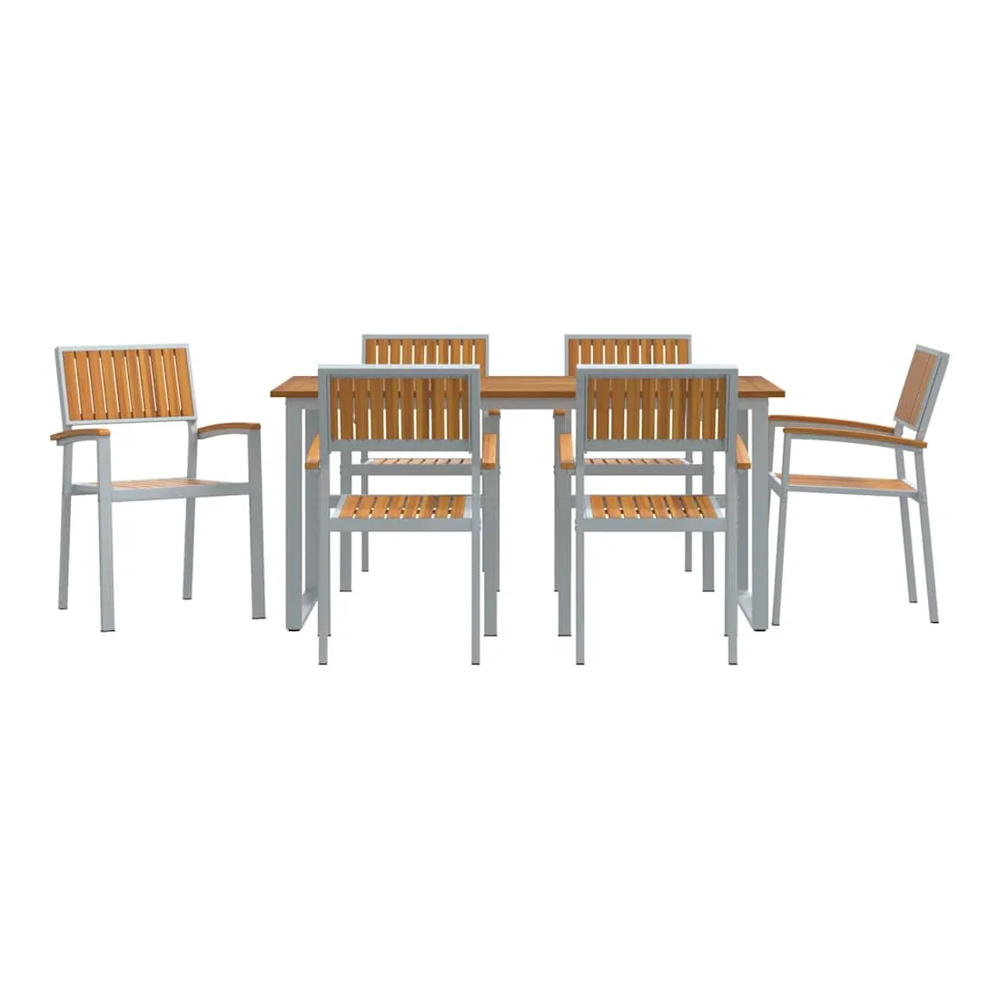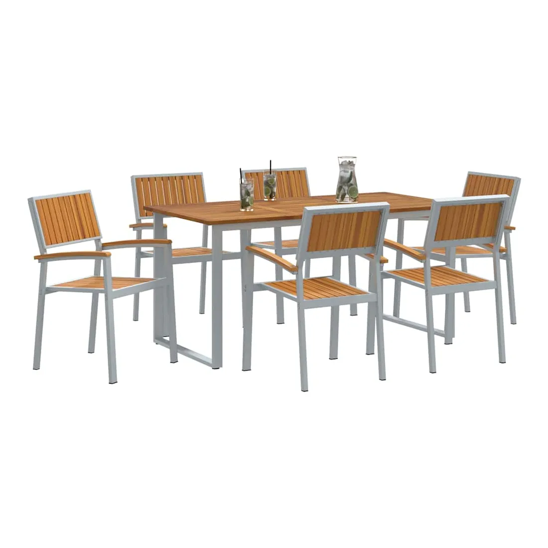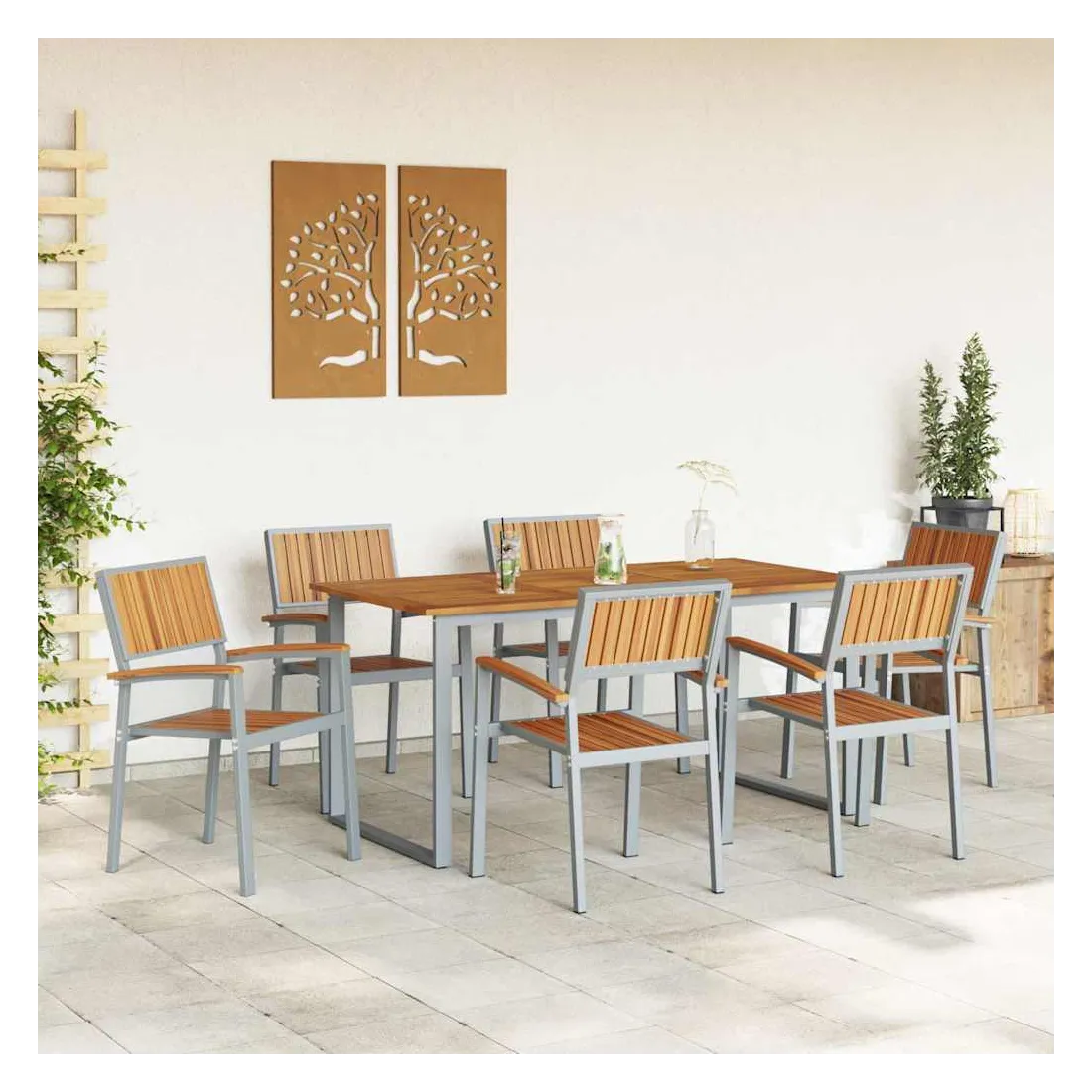 Cet ensemble moderne de salle à manger de jardin est fait pour les espaces extérieurs actuels, offrant une solution à la fois stylée et pratique pour vos repas en plein air. Avec ses lignes épurées et sa simplicité, il se fond facilement dans presque tous les cadres extérieurs, vous permettant de profiter de bons repas et de moments entre amis. La finition en bois d'acacia et la forme géométrique ajoutent un côté naturel et chic qui embellit votre ambiance extérieure. Matériaux de qualité : Cet ensemble est fait de bois d'acacia massif, connu pour sa belle texture et son côté naturel. Le cadre en acier robuste assure une résistance aux intempéries, garantissant durabilité et allure sous le soleil comme sous la pluie, idéal pour les repas en extérieur toute l'année. Composants inclus : Comprend des accoudoirs et dossiers en bois d'acacia solide, plus une grande table rectangulaire. Le bois d'acacia apporte confort et longévité, parfait pour partager des repas en famille et des soirées en extérieur. Style et fonction : Le design moderne avec ses lignes épurées et peu de fioritures donne une impression accueillante mais discrète. Il s'adapte aisément à différents styles de déco, apportant une touche moderne à vos jardins ou terrasses. Utilisations recommandées : Idéal pour jardins et terrasses, cet ensemble est parfait pour toutes vos activités extérieures, des petits rassemblements aux grandes fêtes. Sa taille généreuse permet d’accueillir plusieurs invités avec de bons plats. Entretien facile : Pour garder votre ensemble au top, un petit coup de chiffon sec pour la poussière suffit. Sa résistance à l'usure permet un entretien simple et un plaisir qui dure.