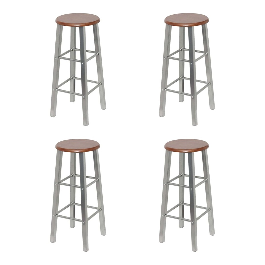 Ces 4 tabourets de bar ont un design classique et moderne et sont parfaits dans votre maison comme au bar. Les tabourets de bar ont des repose-pieds intégrés de deux hauteurs différentes, vous offrant une assise confortable toute la soirée. Le siège du tabouret de bar est en MDF marron et son cadre est en acier. Les tabourets sont faciles à assembler et à nettoyer si nécessaire. La livraison comprend 4 tabourets de bar.