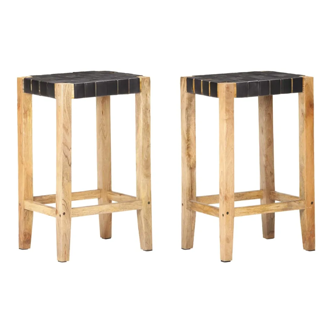 Ces tabourets de bar doux et confortables compléteront n’importe quel intérieur avec leur design unique et saisissant. Fabriquées en cuir véritable combiné avec du bois de manguier massif, ces chaises de bar sont durables et confortables. Les sièges sont doux au toucher et offrent une expérience d'assise confortable. Le cadre en bois ajoute à leur robustesse et les tabourets sont faciles à déplacer pour convenir à n’importe quel décor. Veuillez noter : les magnifiques veines du bois rendent chacune de ces chaises de bar unique et légèrement différente l'une de l'autre ; la livraison est aléatoire.