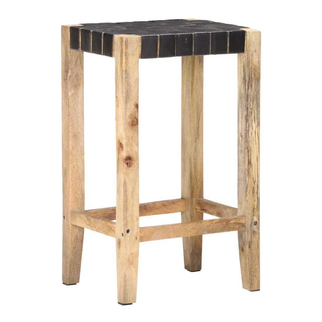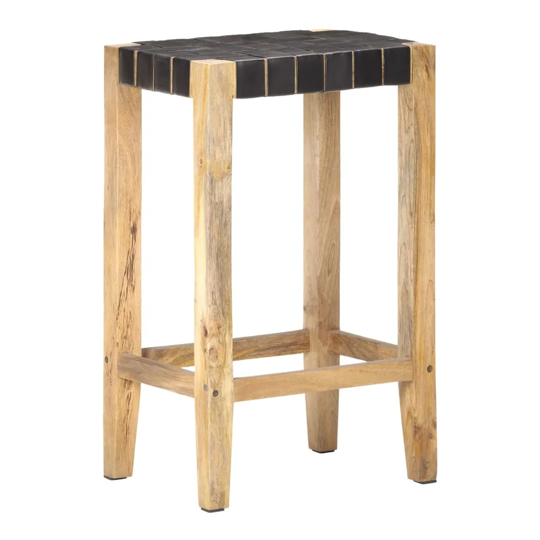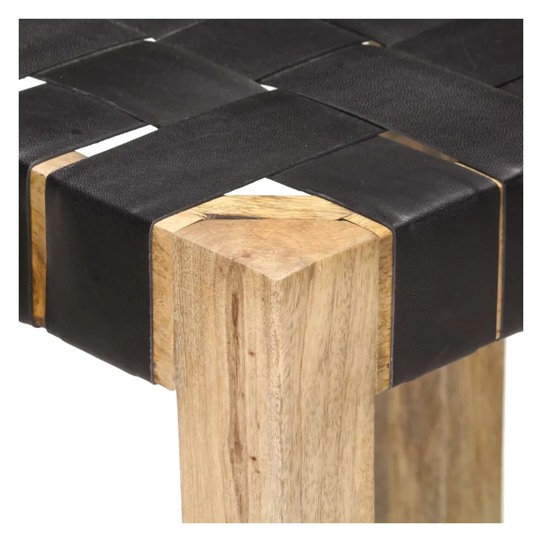 - Matériau : cuir de chèvre véritable avec finition noire, bois de manguier massif avec une finition naturelle