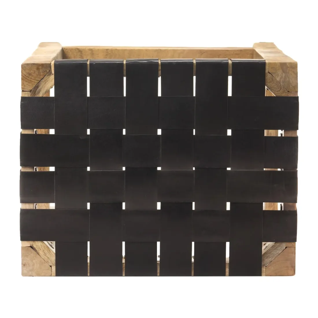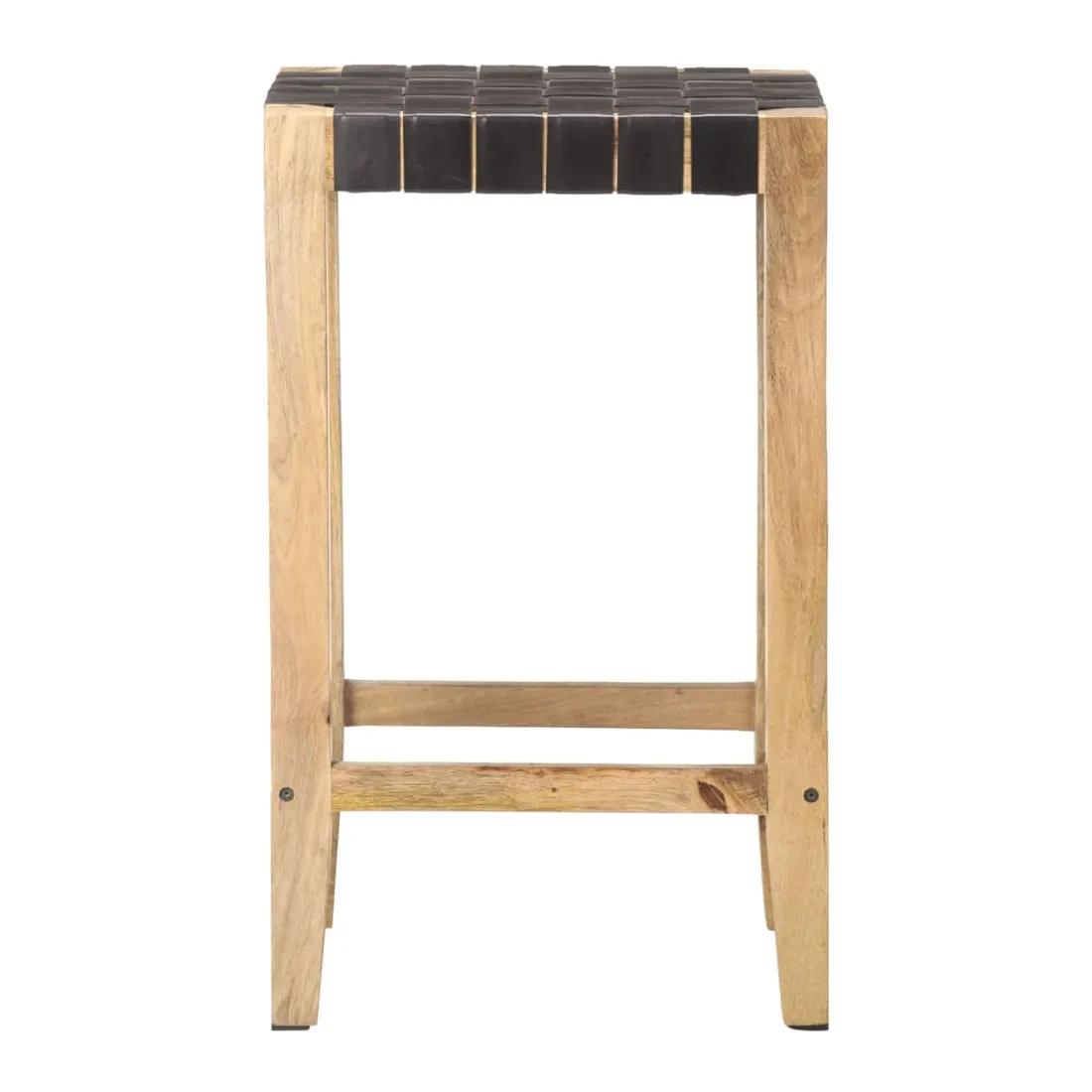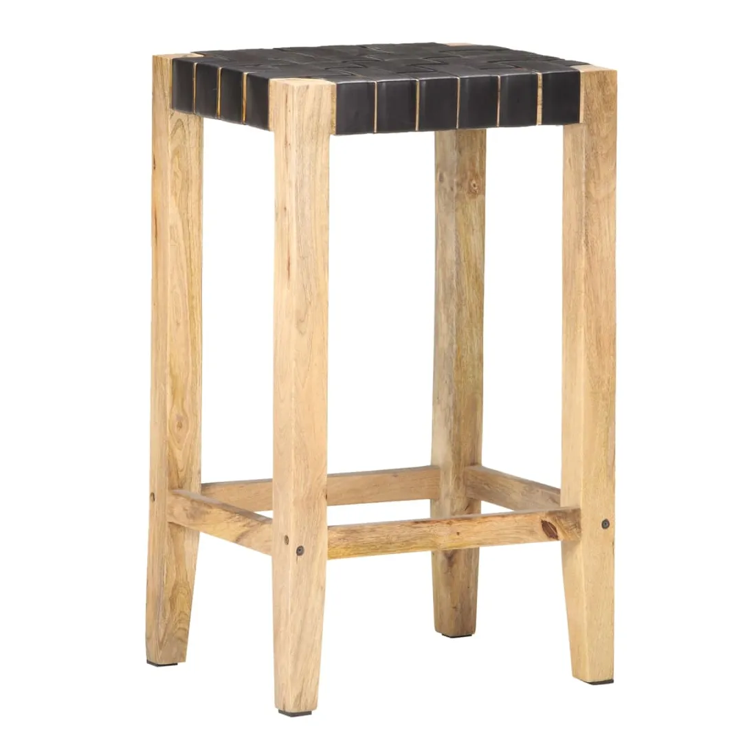 - Matériau : cuir de chèvre véritable avec finition noire, bois de manguier massif avec une finition naturelle