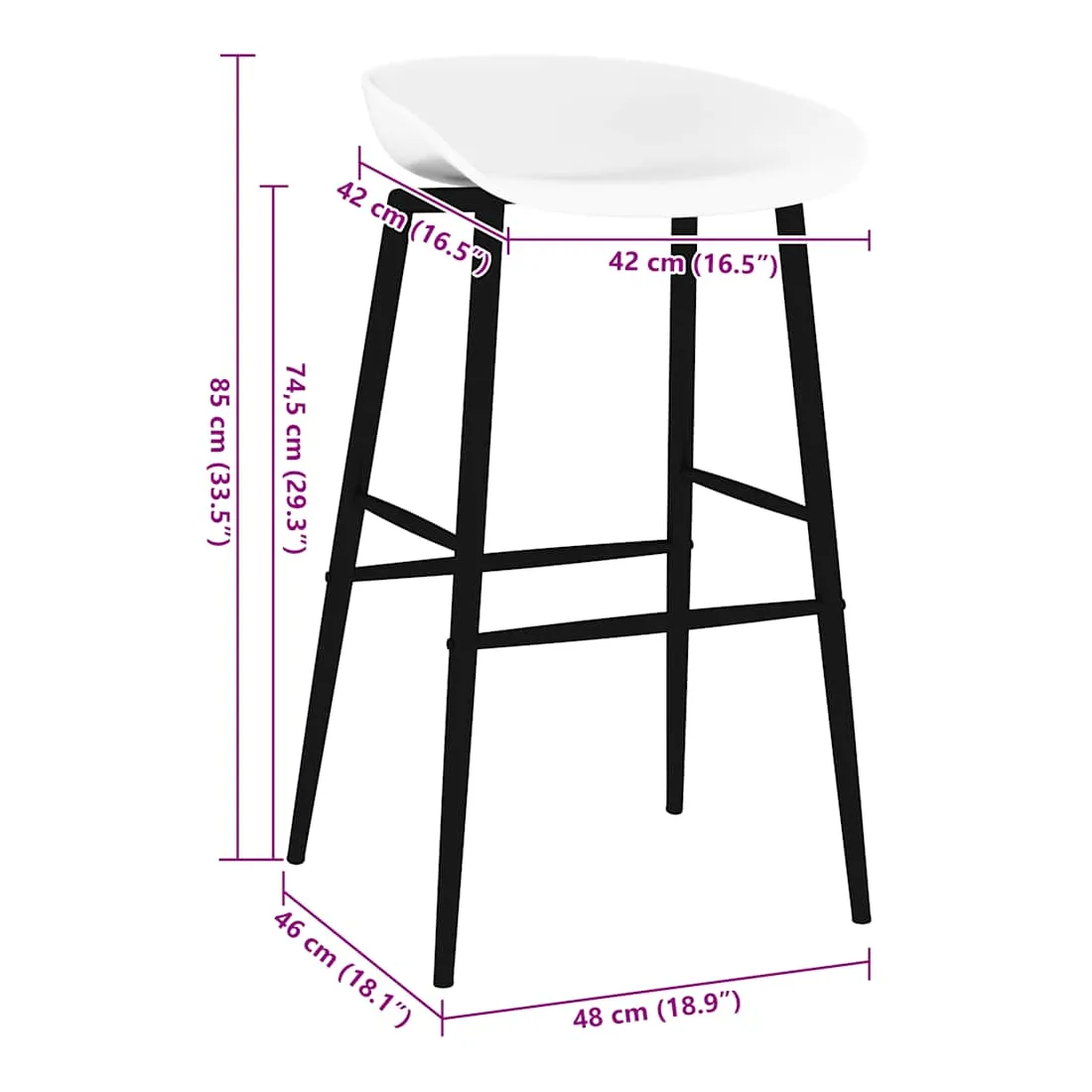 - Hauteur du siège à partir du sol : 74,5 cm