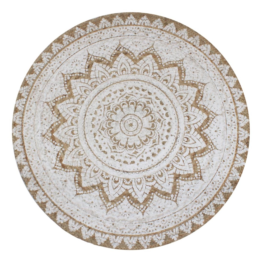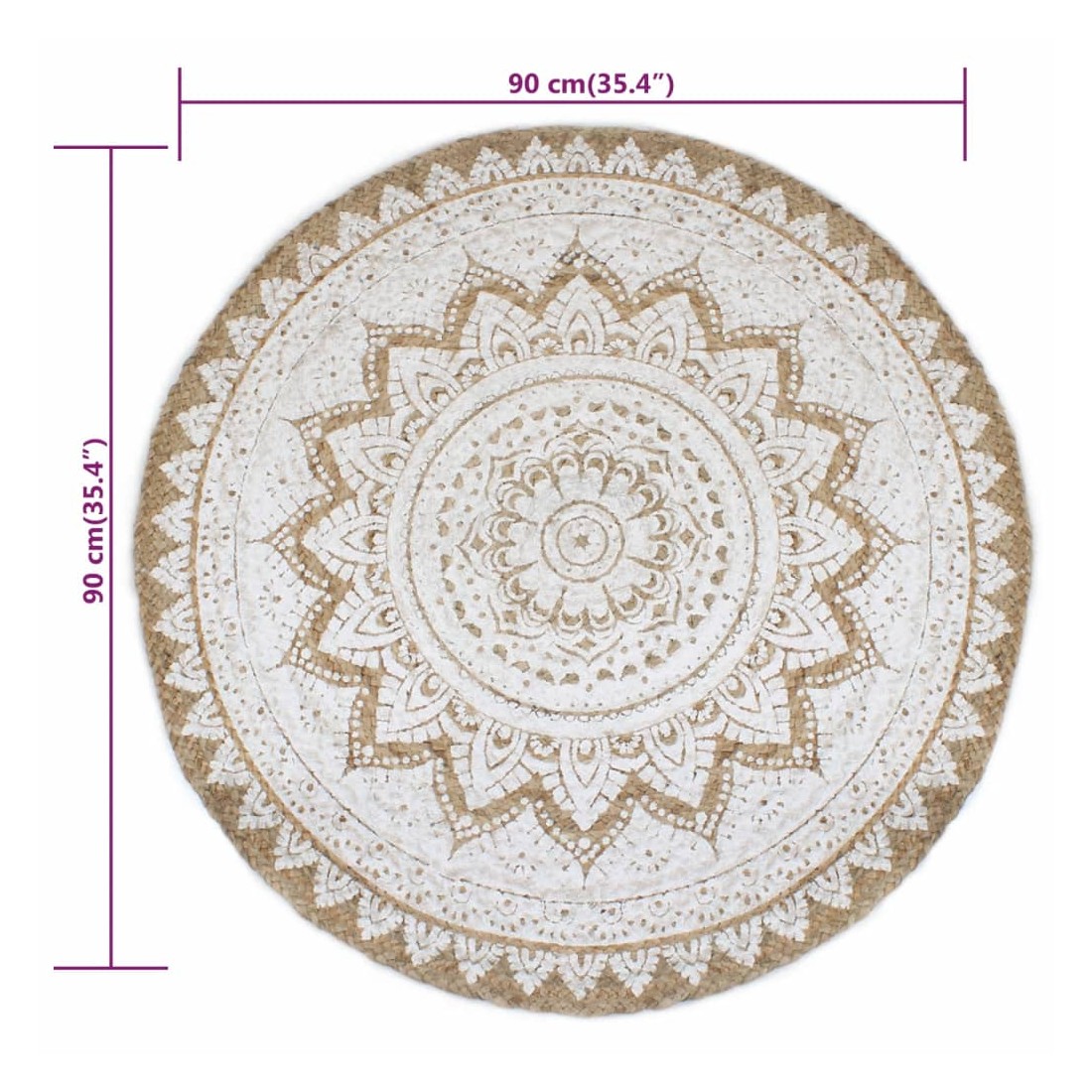 Donnez une touche naturelle à votre intérieur avec notre tapis de jute tressé ! Le tapis rond est tissé à la main par des artisans qualifiés avec un savoir-faire exceptionnel et avec sa texture attrayante et sa belle impression Mandala, il s'intégrera parfaitement dans la décoration de votre maison. Le jute est un matériau naturellement solide, doux au toucher, mais durable et nécessitant peu d'entretien. Veuillez noter que chaque tapis est unique ; des variations de couleur et de design peuvent se produire en raison de la nature artisanale du produit ; la livraison est aléatoire. Remarque : nos tapis sont emballés en rouleaux pour un transport facile. Veuillez permettre au produit un certain temps pour devenir parfaitement droit et plat.