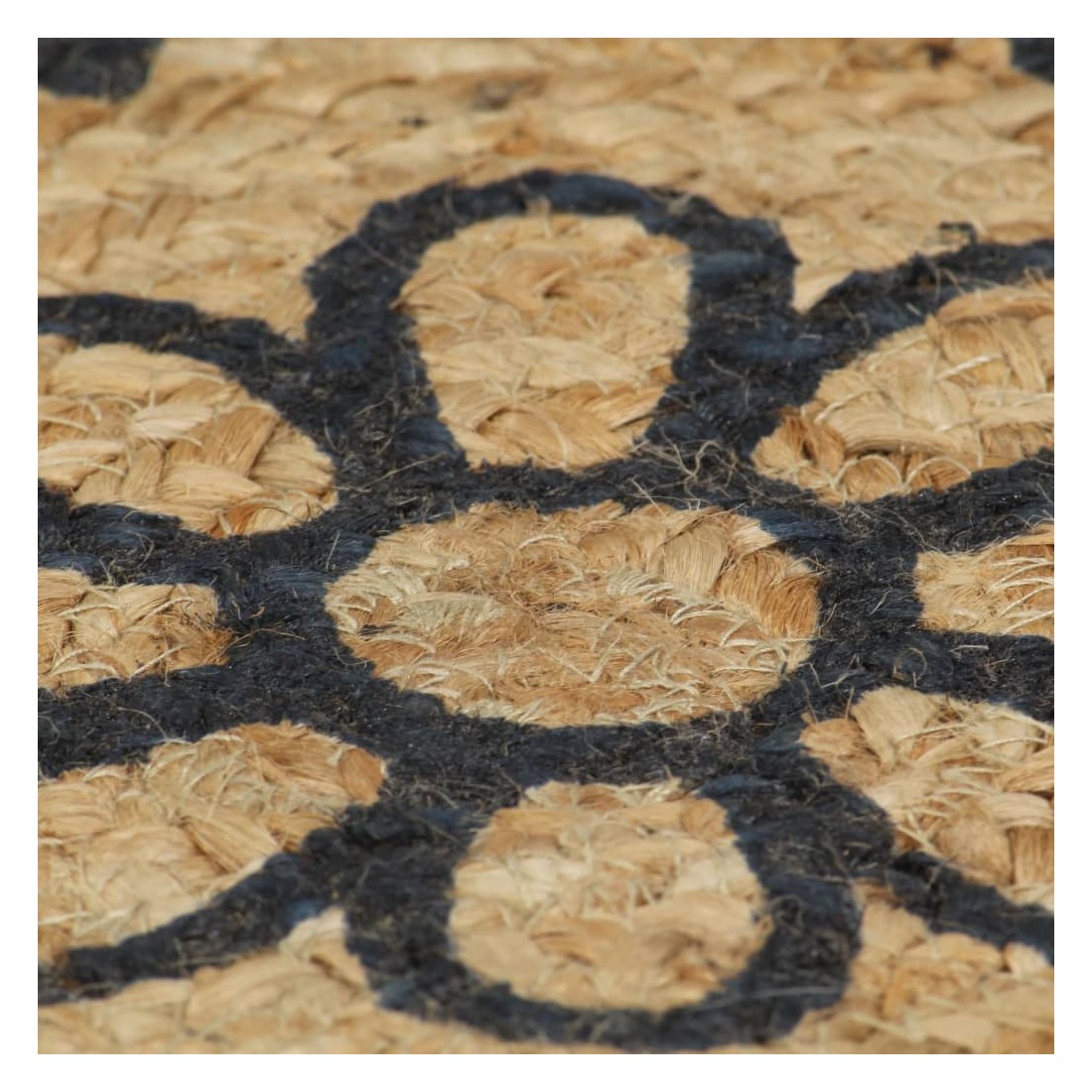 Tapis fait à la main Jute avec imprimé bleu foncé 90 cm