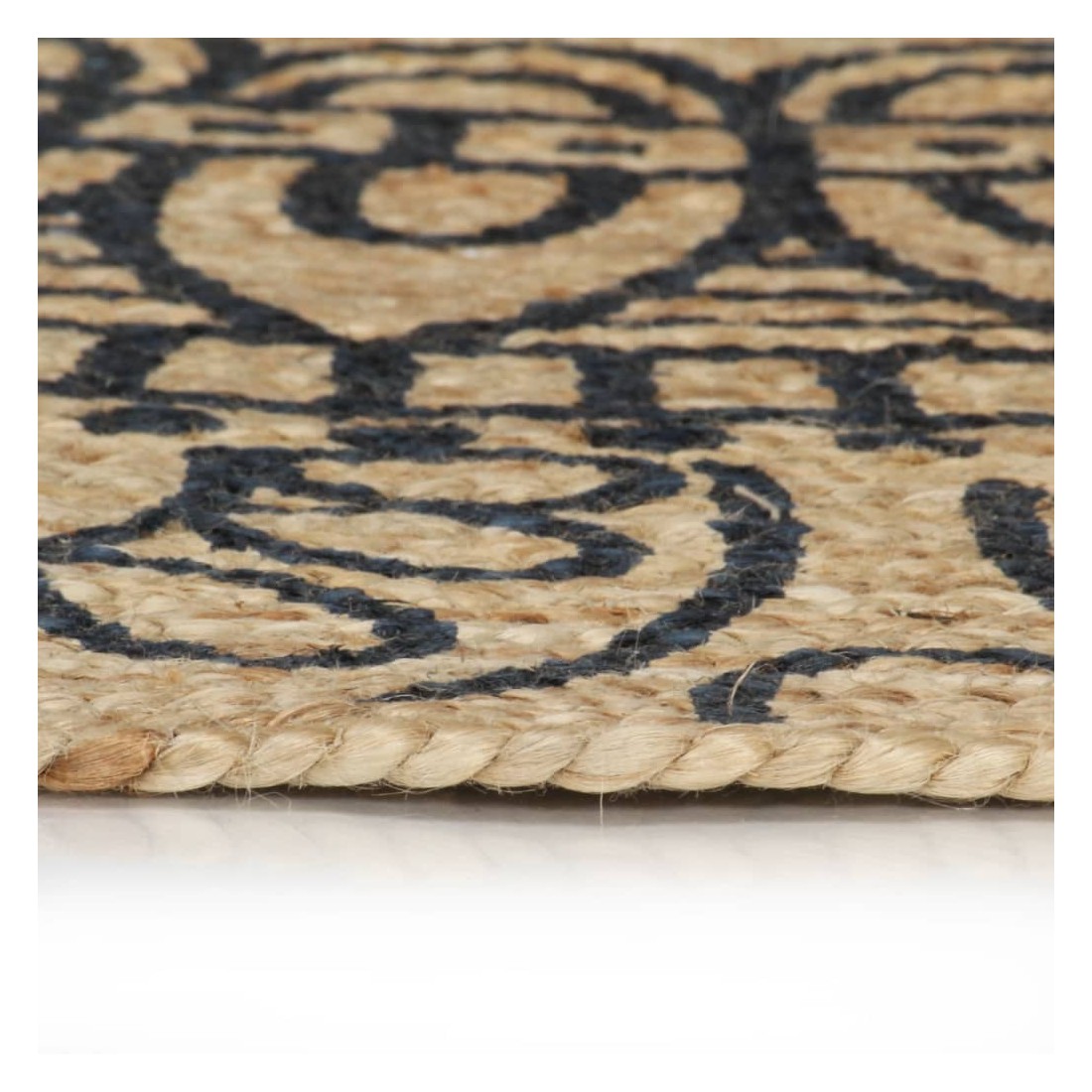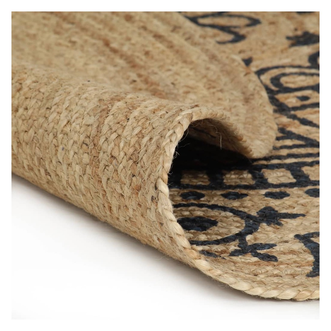 Tapis fait à la main Jute avec imprimé bleu foncé 150 cm