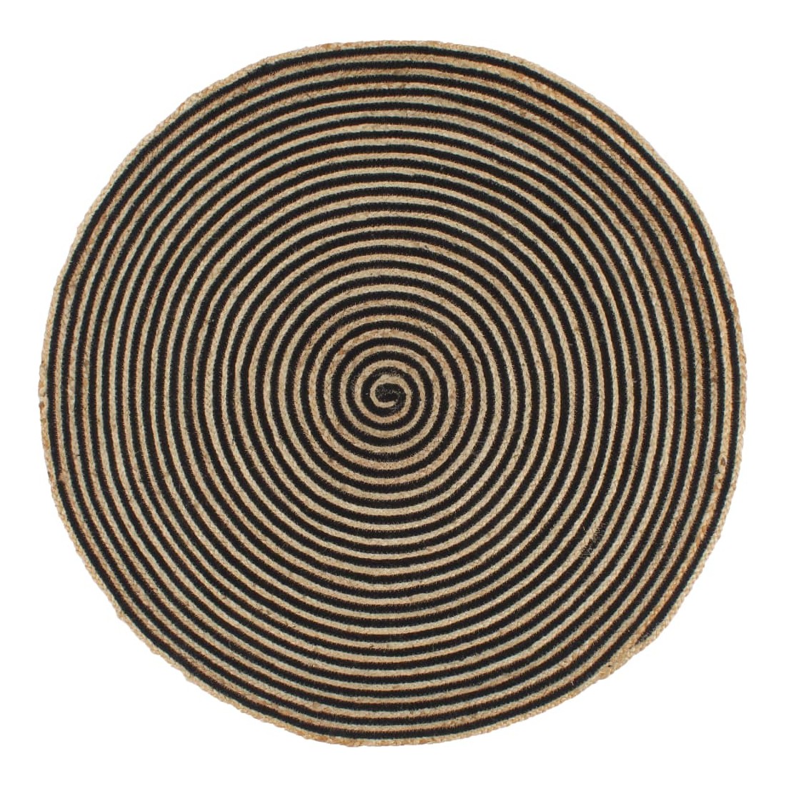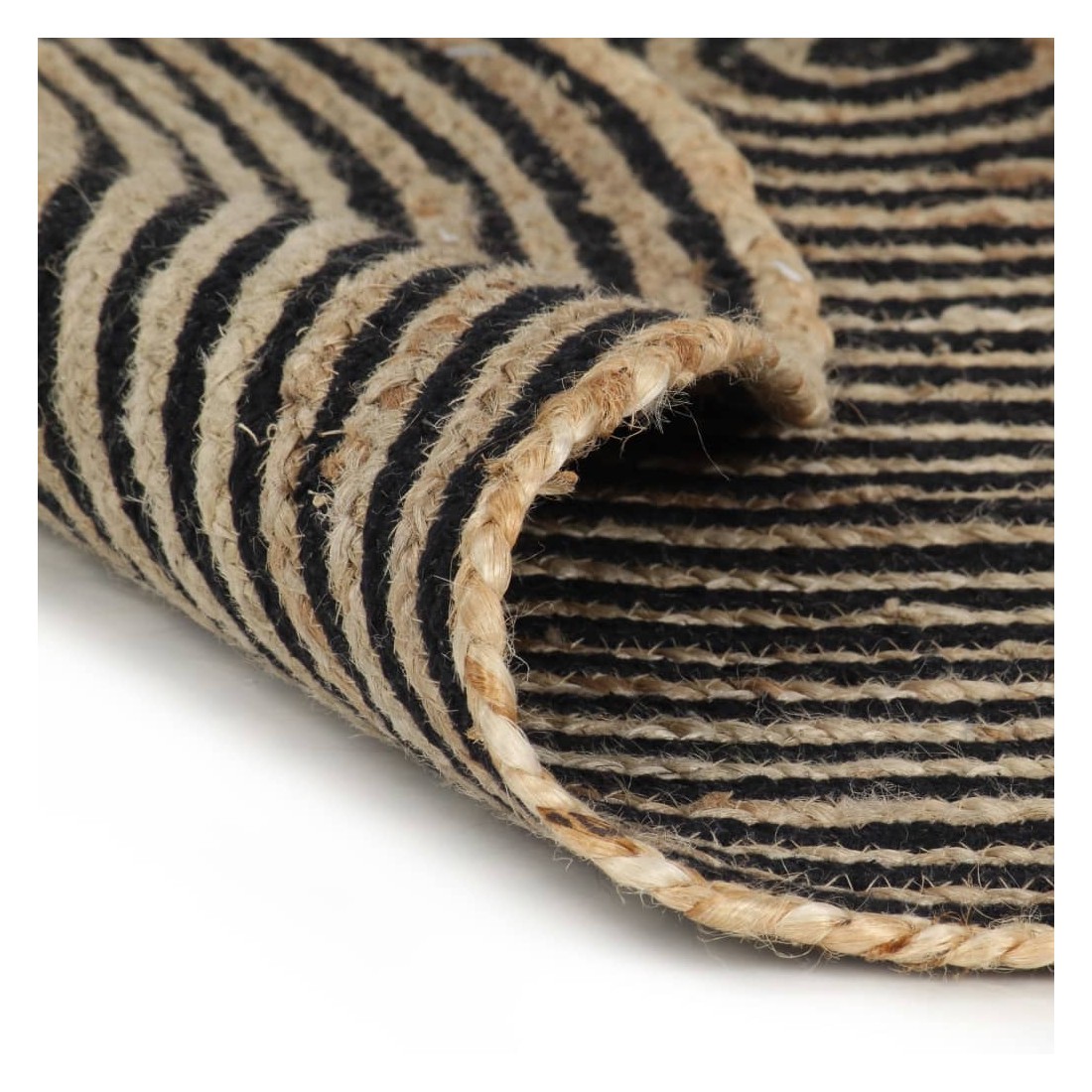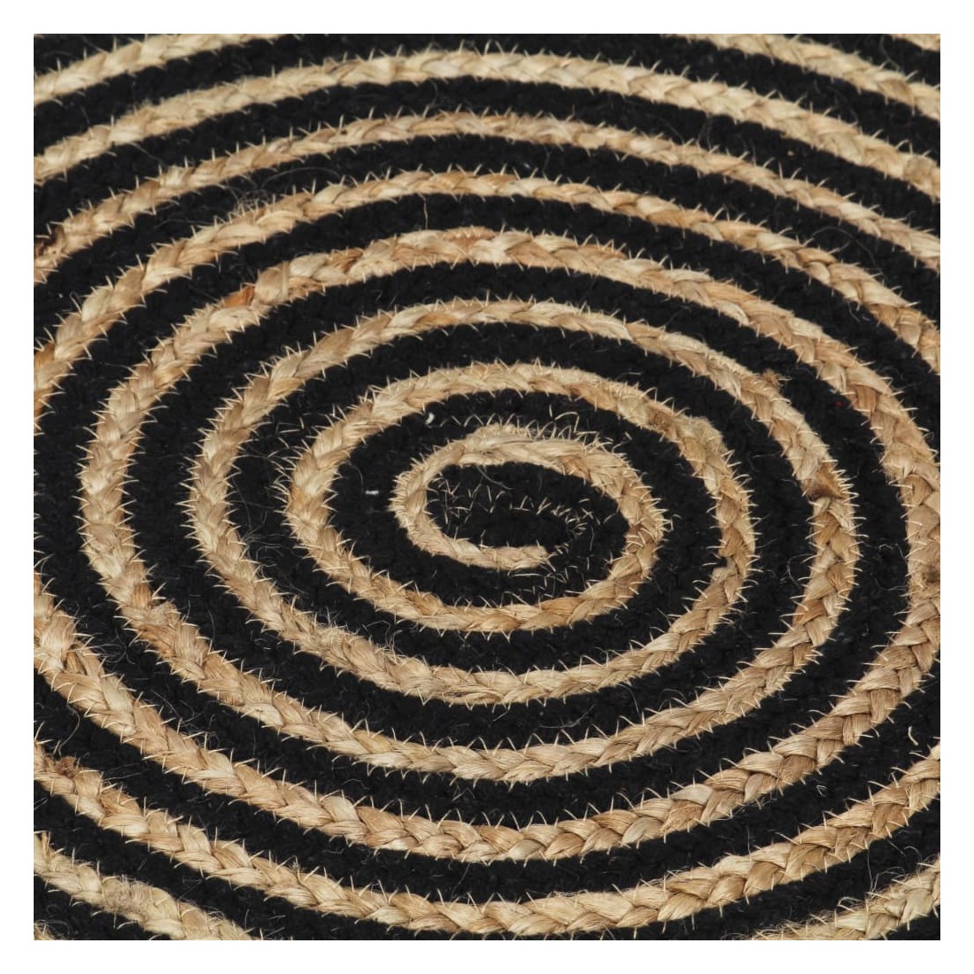 Tapis fait à la main Jute avec design de spirale Noir 150 cm