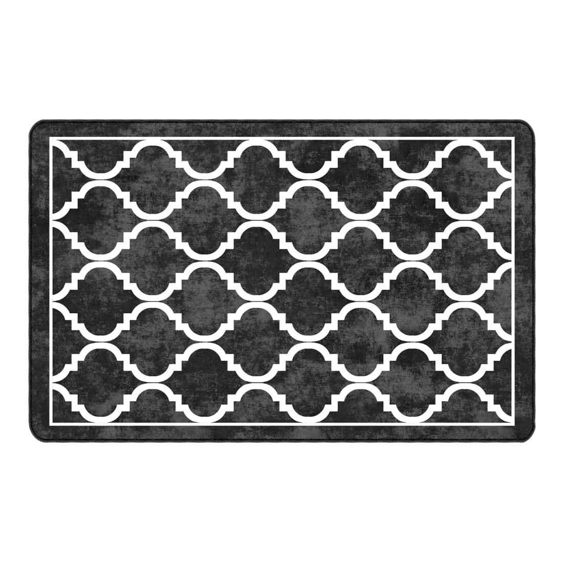 Tapis lavable noir et blanc 190x300 cm antidérapant