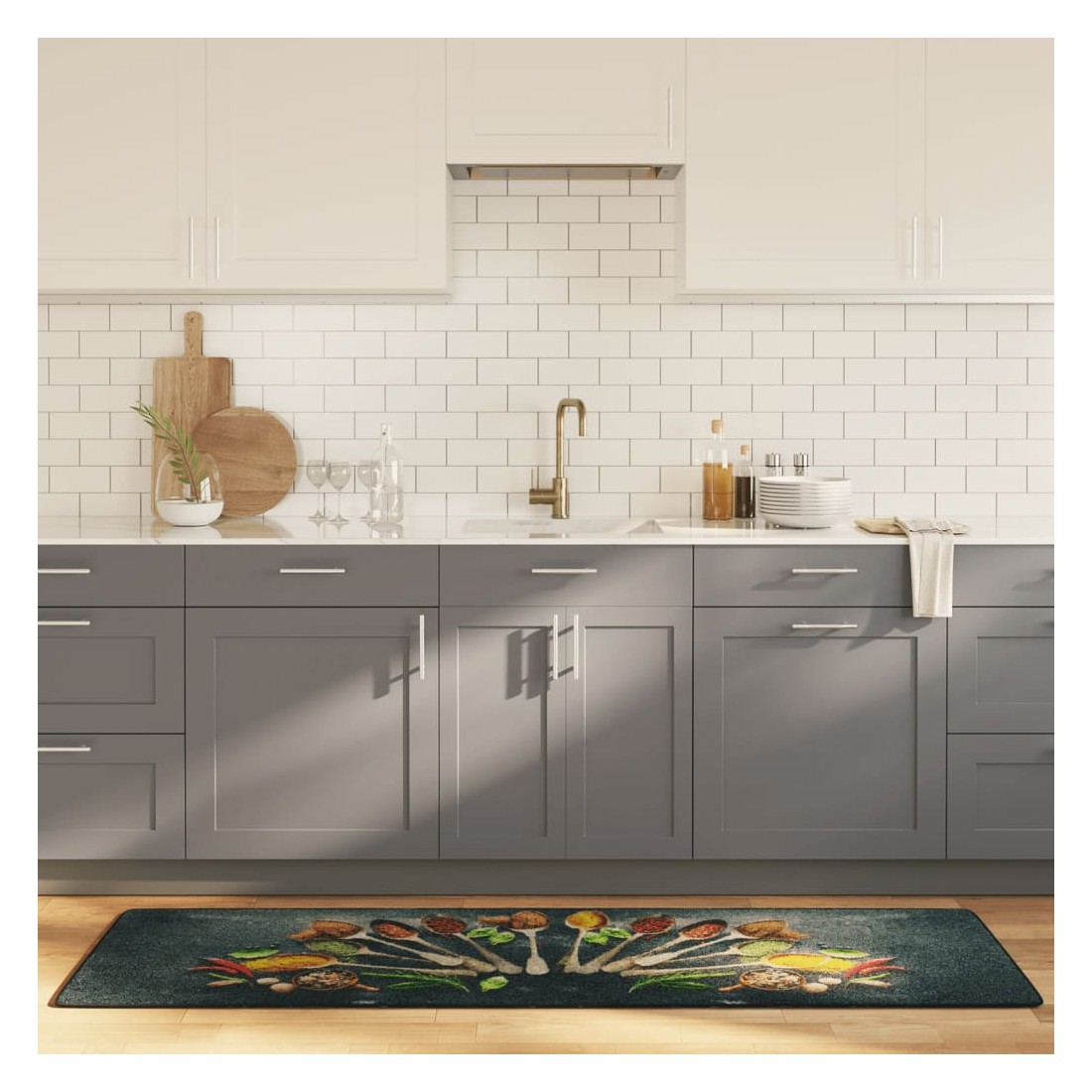 Avec ses couleurs vibrantes et ses magnifiques motifs, ce tapis de cuisine ajoute une touche de sophistication et de modernité à votre intérieur. Matériau doux : ce tapis de cuisine est fait de velours, doux au toucher mais durable et nécessitant peu d'entretien.Motif attrayant : le tapis de cuisine présente des motifs attrayants, ce qui en fait un accroche-regard dans votre maison.Support antidérapant : ce tapis de sol de cuisine peut être fermement fixé au sol grâce à son support antidérapant qui vous protège contre les glissements.Réduction du bruit : ce tapis de cuisine absorbe les sons et peut réduire les bruits divers, créant ainsi un environnement calme.Entretien facile : le tapis de sol est lavable en machine afin que vous puissiez le nettoyer et l'entretenir facilement. Bon à savoir :Le tapis est emballé en rouleau pour un transport facile. Veuillez laisser un peu de temps au produit pour qu'il devienne parfaitement droit et plat.