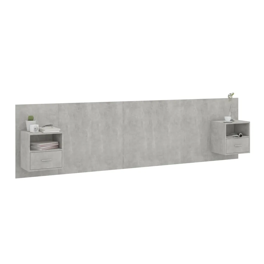 Tête de lit avec armoires Gris béton Bois d'ingénierie