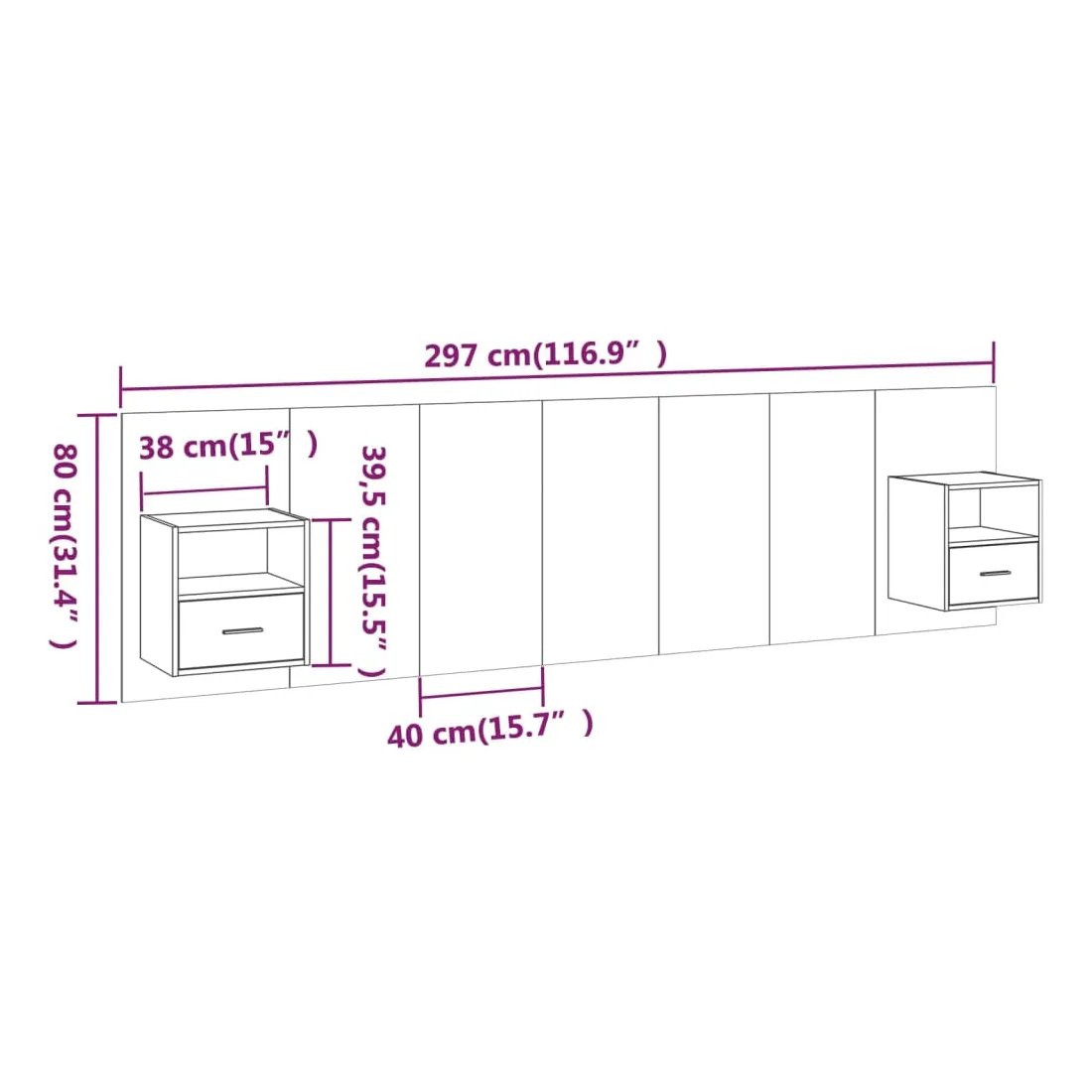 • Dimensions de la tête de lit : 200 x 1,5 x 80 cm (L x l x H)