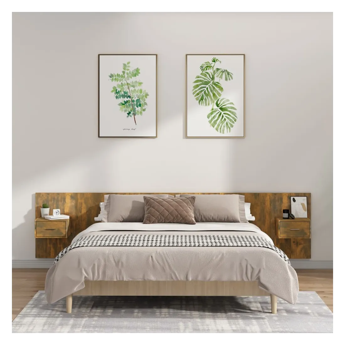 Tête de lit avec armoires Chêne fumé Bois d'ingénierie