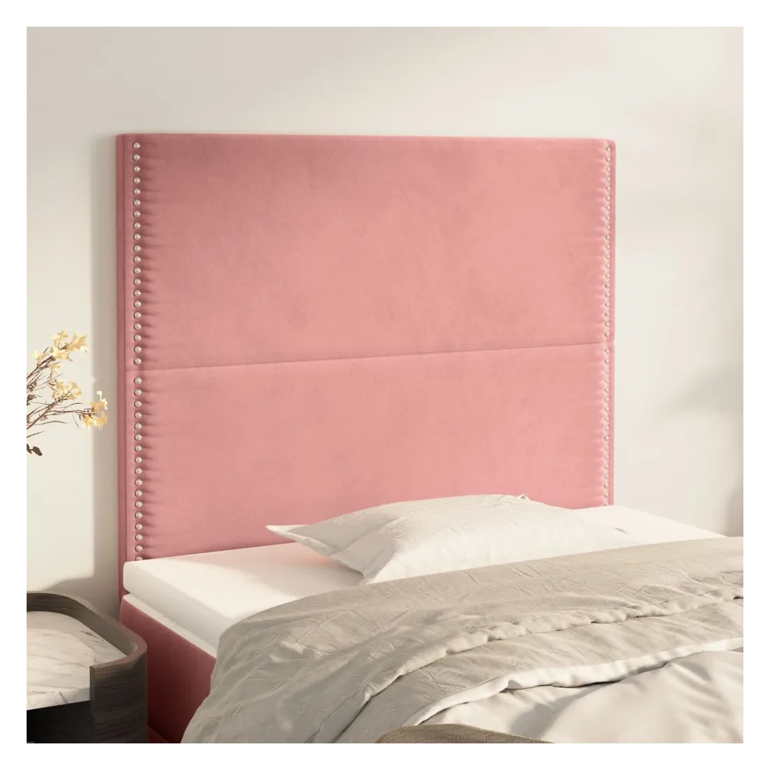 Cette tête de lit classique au design élégant complète parfaitement votre cadre de lit et s'adapte à toutes les chambres. Velours doux : Le velours est un tissu doux et luxueux qui se distingue par ses fibres denses et régulières. Il offre un toucher doux et agréable.Pieds robustes et stables : Les pieds en bois garantissent robustesse et stabilité.Hauteur réglable : La tête de lit est réglable en hauteur selon vos préférences.Excellent soutien : La tête de lit offre un excellent soutien dorsal lorsque vous êtes assis dans votre lit pour lire ou regarder la télévision.Design élégant : Les rivets sur les bords rehaussent la beauté classique de cette tête de lit rembourrée. Remarque :La livraison comprend uniquement la tête de lit. Le cadre de lit et le matelas ne sont pas inclus. Vous pouvez consulter notre boutique pour les cadres et matelas assortis.Chaque produit est livré avec un manuel de montage dans la boîte pour un assemblage facile.