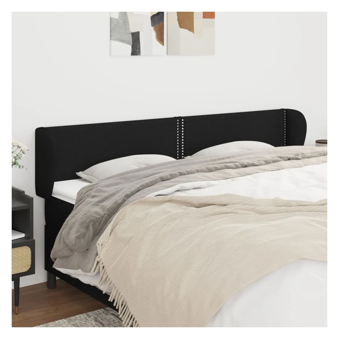 Tête de lit avec oreilles Noir 163x23x78/88 cm Tissu