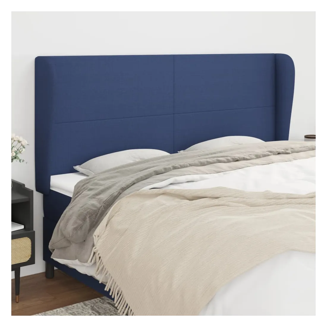 Tête de lit avec oreilles Bleu 163x23x118/128 cm Tissu