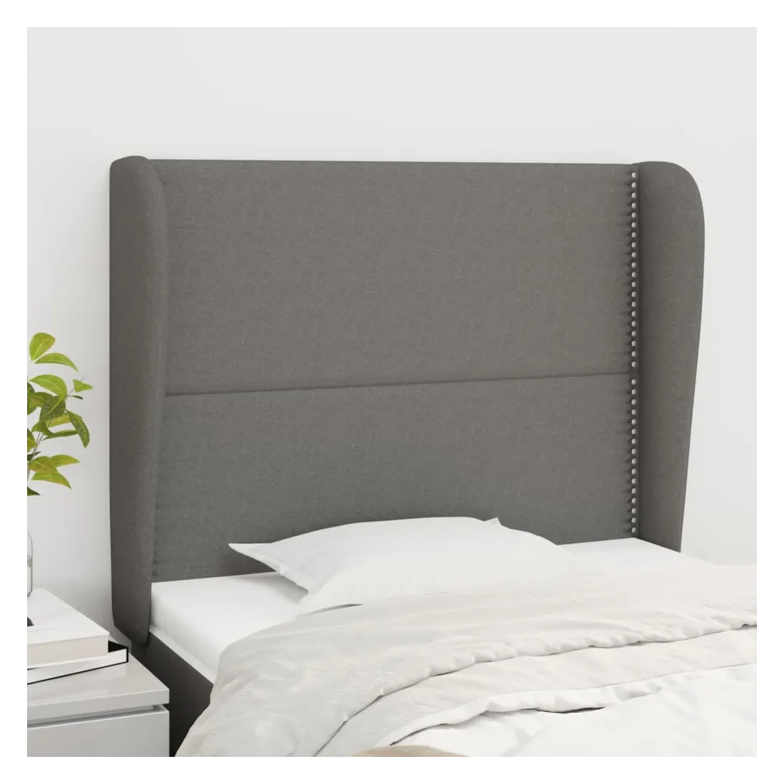Tête de lit avec oreilles Gris foncé 93x23x118/128 cm Tissu