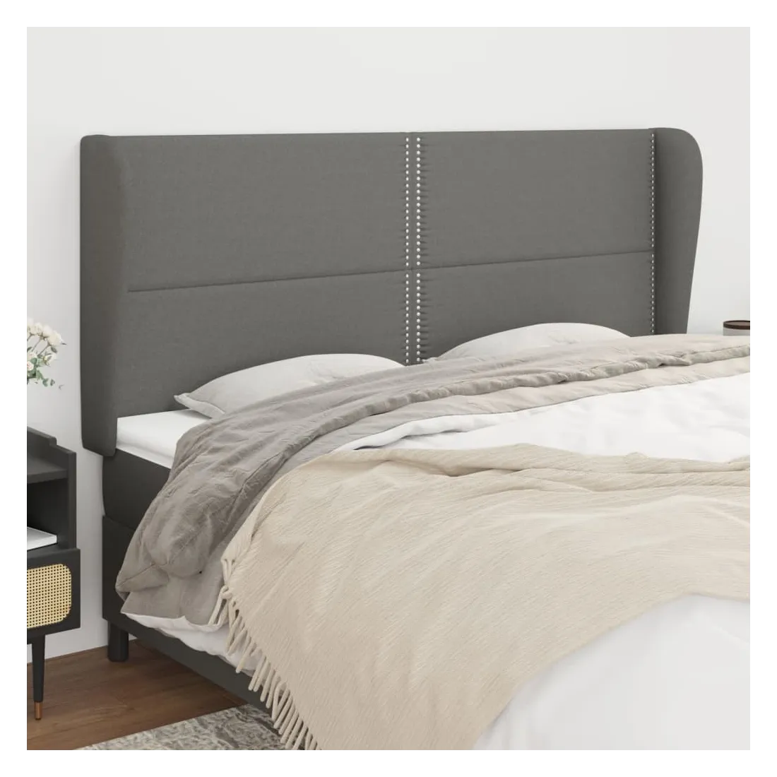 Tête de lit avec oreilles Gris foncé 183x23x118/128 cm Tissu