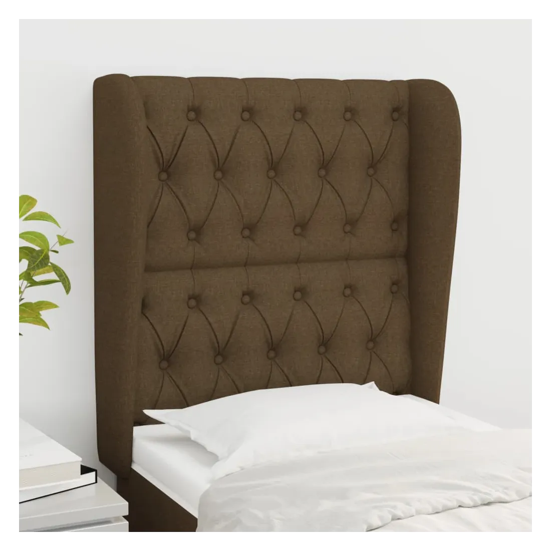 Tête de lit avec oreilles Marron foncé 83x23x118/128 cm Tissu