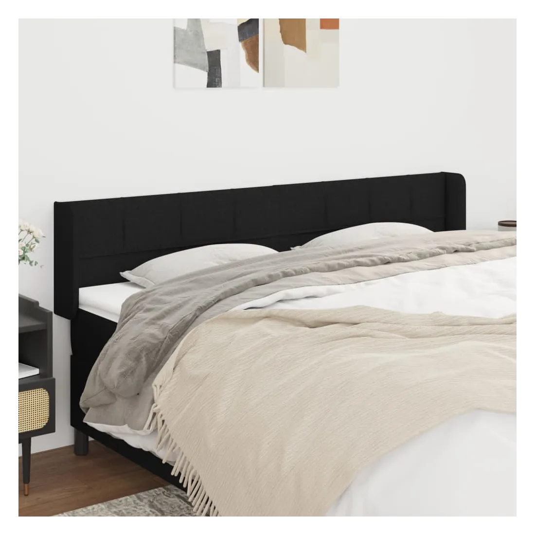 Tête de lit avec oreilles Noir 183x16x78/88 cm Tissu