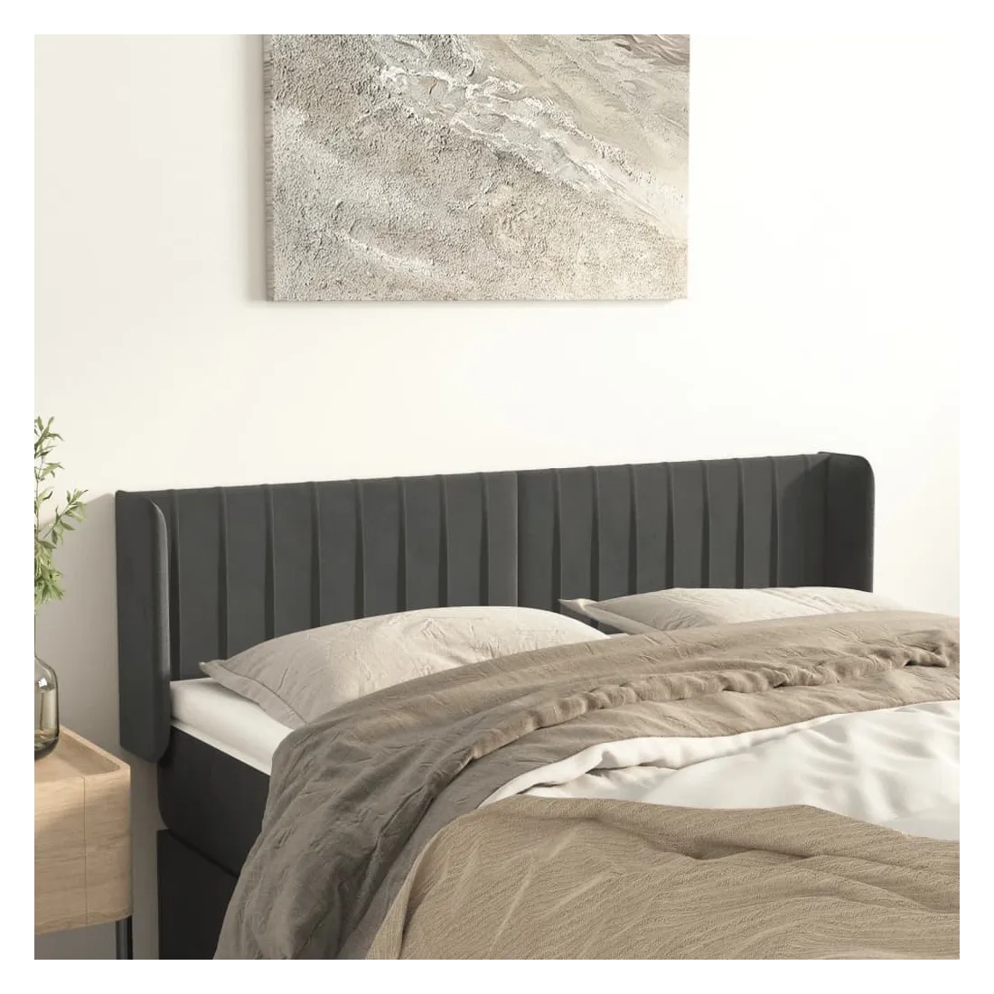 Cette tête de lit avec oreilles classique au design élégant donne à votre cadre de lit un aspect complet et convient à toute chambre à coucher. Velours doux : le velours est un tissu doux et luxueux qui se reconnaît à son tas dense de fibres uniformément coupées qui ont une touche lisse. Le tissu en velours présente un toucher doux distinctif, ce qui le rend confortable au toucher.Pieds robustes et stables : les pieds en bois assurent la robustesse et la stabilité.Hauteur réglable : la tête de lit est réglable en hauteur selon vos préférences.Excellent soutien : la tête de lit vous offre un excellent soutien du dos lorsque vous êtes assis dans votre lit pour lire ou regarder la télévision. Remarque :La livraison comprend uniquement la tête de lit. Le cadre de lit et le matelas ne sont pas inclus. Vous pouvez consulter notre boutique pour les cadres et matelas assortis.Chaque produit est livré avec un manuel de montage dans la boîte pour un montage facile.