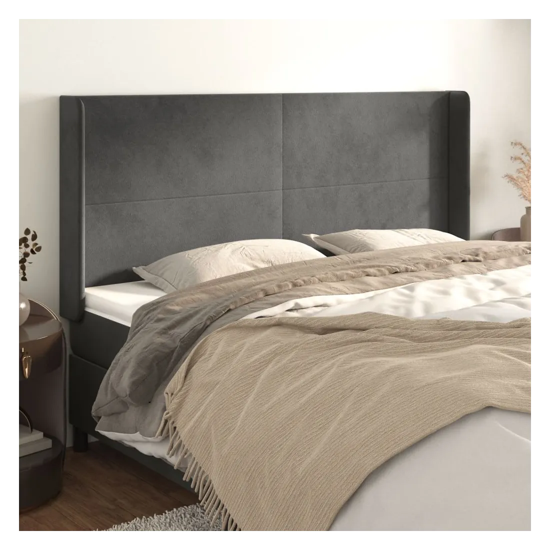Tête de lit avec oreilles Gris foncé 163x16x118/128 cm Velours
