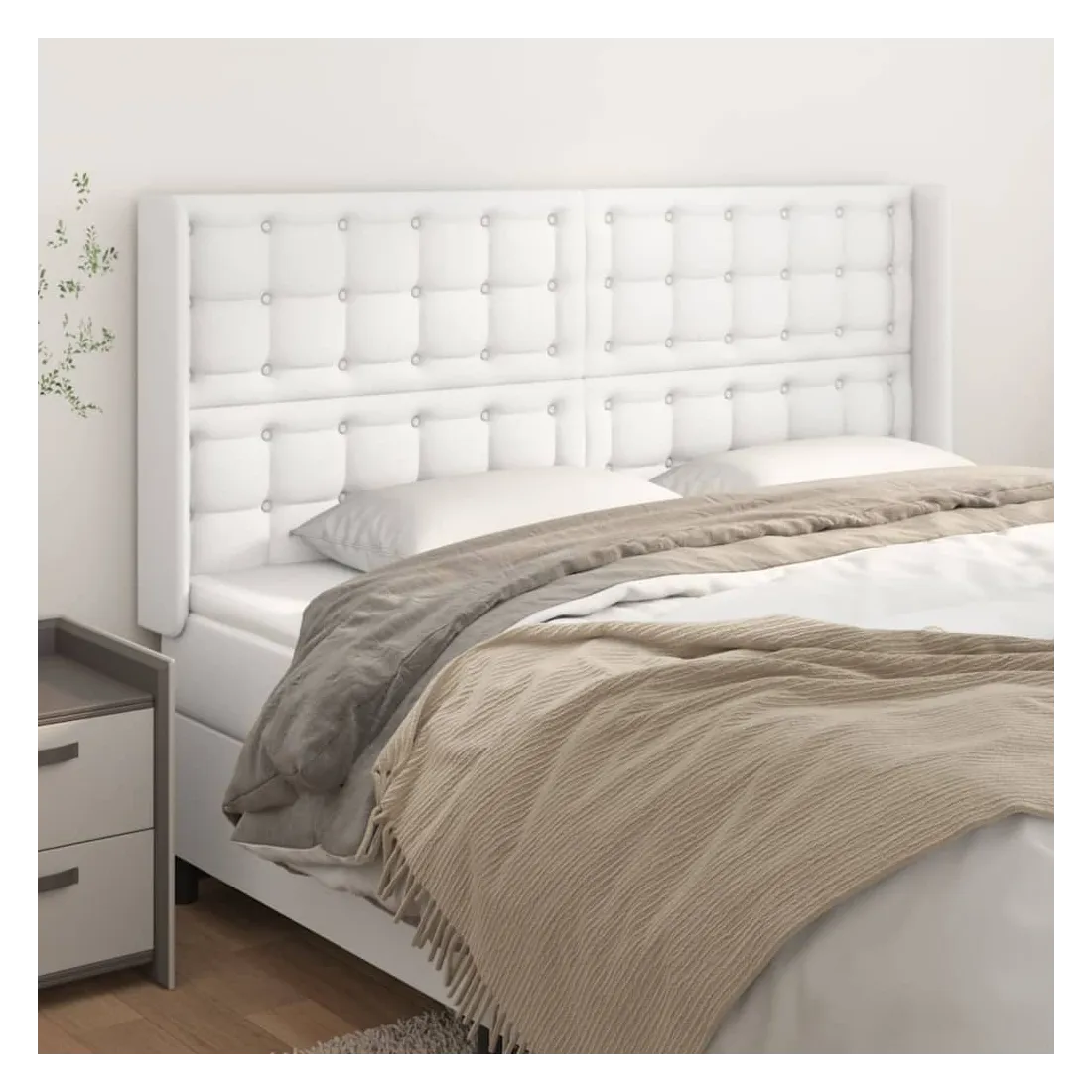 Tête de lit avec oreilles Blanc 163x16x118/128 cm Similicuir