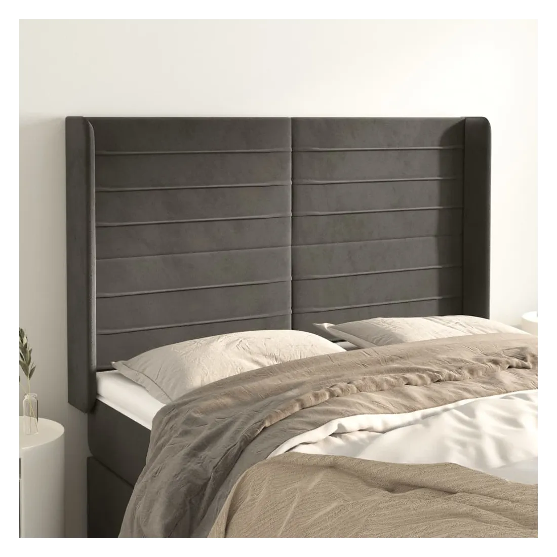 Tête de lit avec oreilles Gris foncé 147x16x118/128 cm Velours