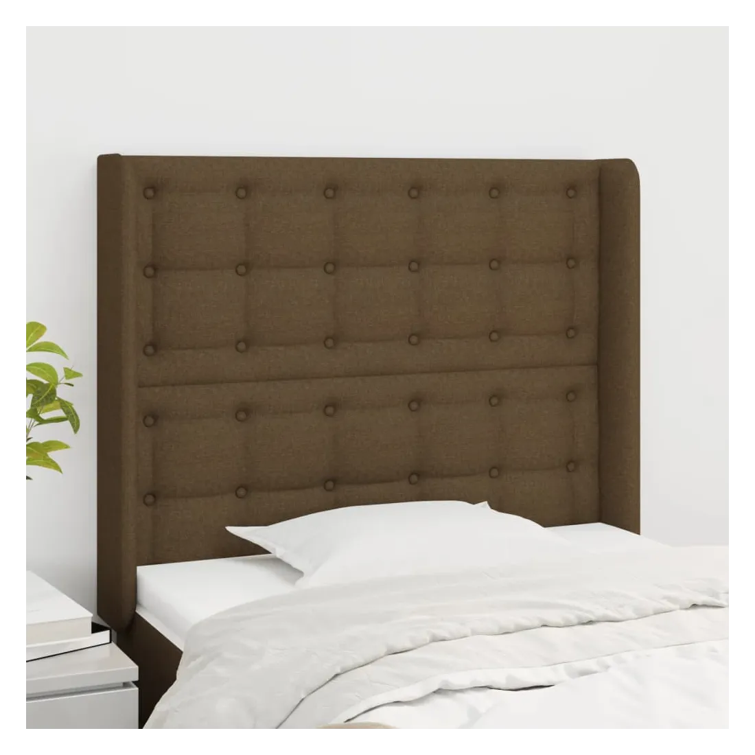 Tête de lit avec oreilles Marron foncé 93x16x118/128 cm Tissu