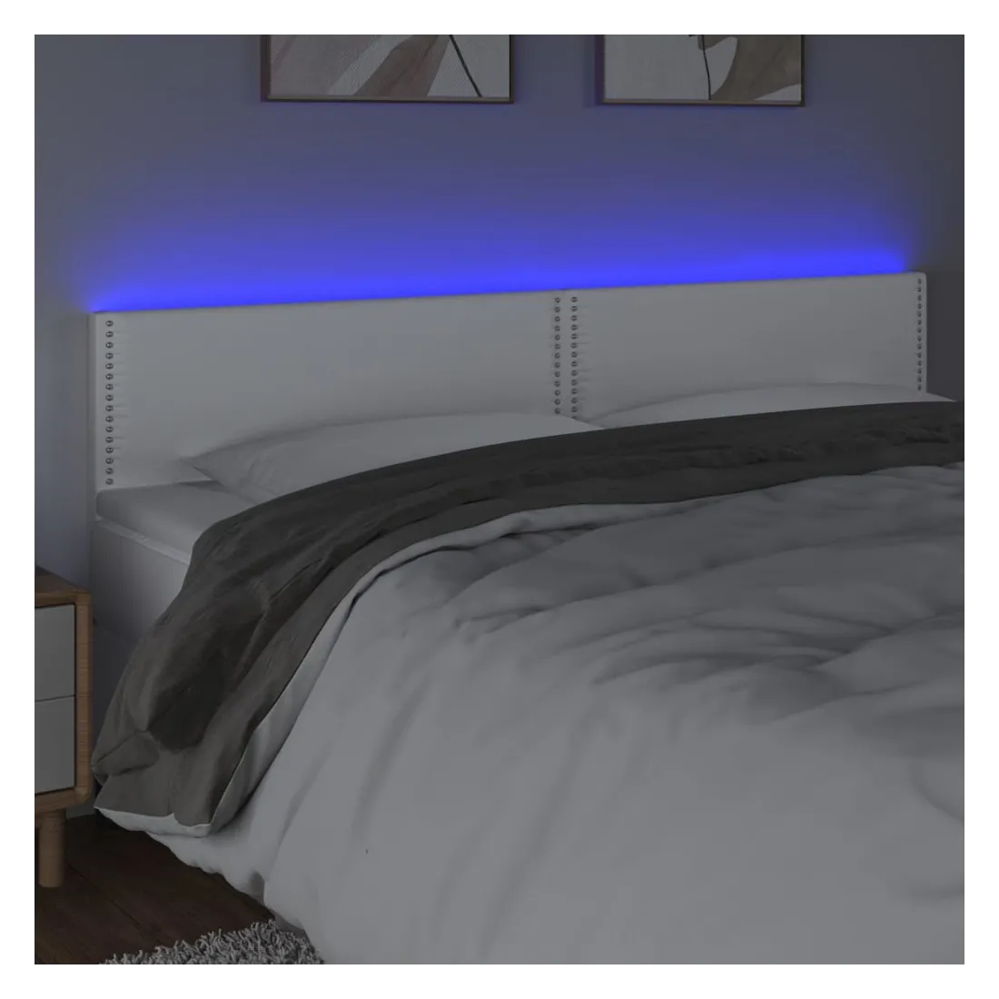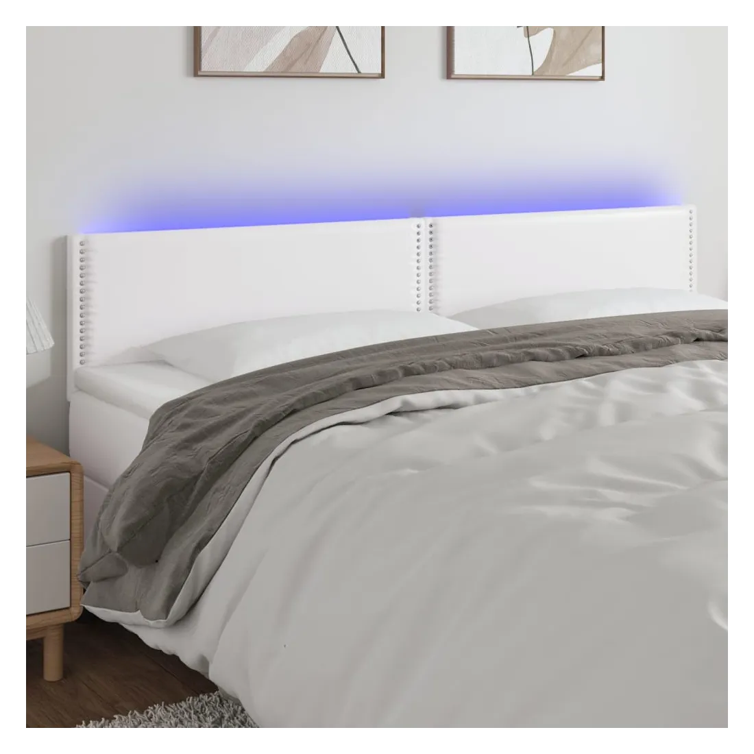 Cette tête de lit à LED classique, au design élégant, donne à votre cadre de lit une touche de modernité étonnante et convient parfaitement à toute chambre à coucher. Similicuir durable : le similicuir de qualité supérieure est un matériau très durable. Il est résistant aux taches, ce qui le rend facile à nettoyer avec un chiffon humide. La surface lisse donne également un aspect luxueux et la beauté du cuir véritable.LED colorée : apportez de l'éclairage dans l'obscurité avec des lumières LED colorées !Hauteur réglable : la tête de lit est réglable en hauteur selon vos préférences.Excellent soutien : la tête de lit vous offre un excellent soutien du dos lorsque vous êtes assis dans votre lit pour lire ou regarder la télévision.Bande à LED découpable : cette bande à LED flexible peut être ajustée en longueur. Le symbole des ciseaux indique où la bande peut être coupée en toute sécurité sans l'endommager. Remarque :Seule la partie avec un symbole de ciseaux peut être coupée et seule la partie avec l'USB continuera à fonctionner comme avant.Chaque produit est livré avec un manuel de montage dans la boîte pour un montage facile.Ce produit est doté d'un connecteur USB, mais la source d'alimentation certifiée de USB 5V n'est pas incluse.