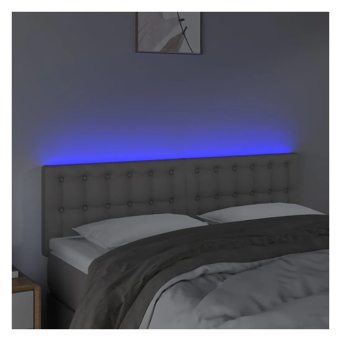 Cette tête de lit à LED classique, au design élégant, donne à votre cadre de lit une touche de modernité étonnante et convient parfaitement à toute chambre à coucher. Similicuir durable : le similicuir de qualité supérieure est un matériau très durable. Il est résistant aux taches, ce qui le rend facile à nettoyer avec un chiffon humide. La surface lisse donne également un aspect luxueux et la beauté du cuir véritable.LED colorée : apportez de l'éclairage dans l'obscurité avec des lumières LED colorées !Hauteur réglable : la tête de lit est réglable en hauteur selon vos préférences.Excellent soutien : la tête de lit vous offre un excellent soutien du dos lorsque vous êtes assis dans votre lit pour lire ou regarder la télévision.Bande à LED découpable : cette bande à LED flexible peut être ajustée en longueur. Le symbole des ciseaux indique où la bande peut être coupée en toute sécurité sans l'endommager. Remarque :Seule la partie avec un symbole de ciseaux peut être coupée et seule la partie avec l'USB continuera à fonctionner comme avant.Chaque produit est livré avec un manuel de montage dans la boîte pour un montage facile.Ce produit est doté d'un connecteur USB, mais la source d'alimentation certifiée de USB 5V n'est pas incluse.