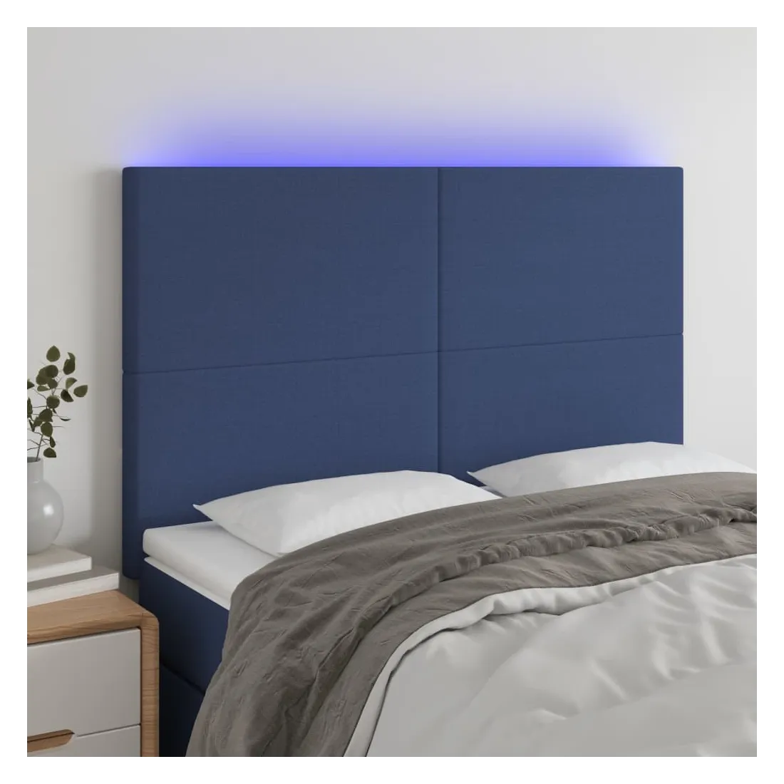 Cette tête de lit à LED classique, au design élégant, donne à votre cadre de lit une touche de modernité étonnante et convient parfaitement à toute chambre à coucher. Tissu durable : le tissu présente un aspect simple et épuré, et il est respirant et durable.LED colorée : apportez de l'éclairage dans l'obscurité avec des lumières LED colorées !Hauteur réglable : la tête de lit est réglable en hauteur selon vos préférences.Excellent soutien : la tête de lit vous offre un excellent soutien du dos lorsque vous êtes assis dans votre lit pour lire ou regarder la télévision.Bande à LED découpable : cette bande à LED flexible peut être ajustée en longueur. Le symbole des ciseaux indique où la bande peut être coupée en toute sécurité sans l'endommager. Remarque :Seule la partie avec un symbole de ciseaux peut être coupée et seule la partie avec l'USB continuera à fonctionner comme avant.Chaque produit est livré avec un manuel de montage dans la boîte pour un montage facile.Ce produit est doté d'un connecteur USB, mais la source d'alimentation certifiée de USB 5V n'est pas incluse.