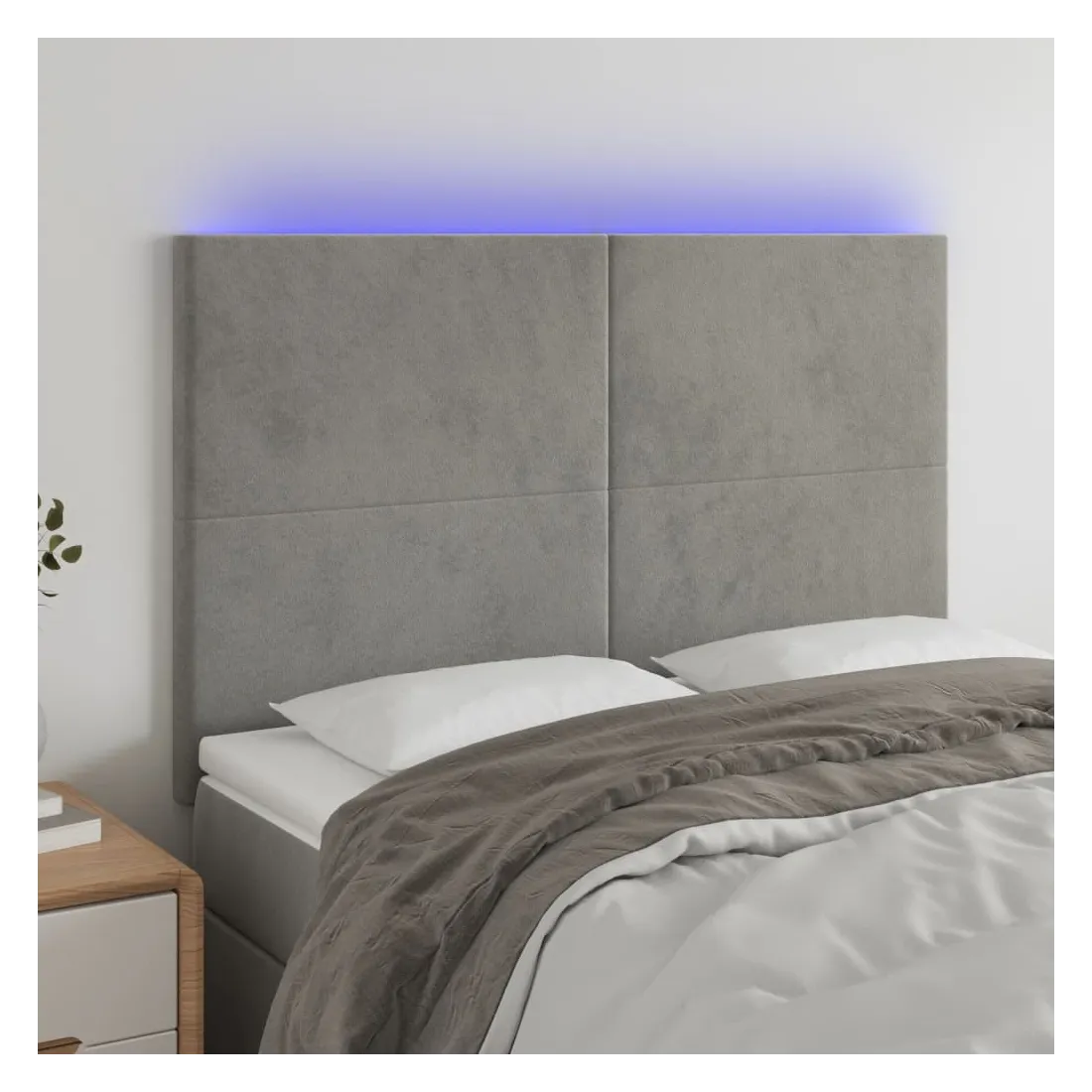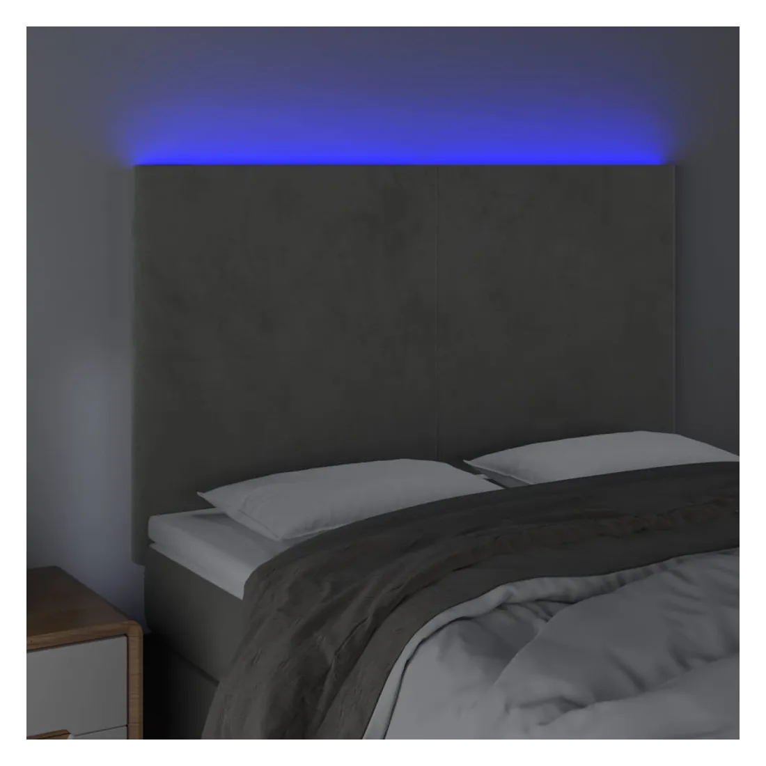 Cette tête de lit à LED classique, au design élégant, donne à votre cadre de lit une touche de modernité étonnante et convient parfaitement à toute chambre à coucher. Velours doux : le velours est un tissu doux et luxueux qui se reconnaît à son tas dense de fibres uniformément coupées qui ont une touche lisse. Le tissu en velours présente un toucher doux distinctif, ce qui le rend confortable au toucher.LED colorée : apportez de l'éclairage dans l'obscurité avec des lumières LED colorées !Hauteur réglable : la tête de lit est réglable en hauteur selon vos préférences.Excellent soutien : la tête de lit vous offre un excellent soutien du dos lorsque vous êtes assis dans votre lit pour lire ou regarder la télévision.Bande à LED découpable : cette bande à LED flexible peut être ajustée en longueur. Le symbole des ciseaux indique où la bande peut être coupée en toute sécurité sans l'endommager. Remarque :Seule la partie avec un symbole de ciseaux peut être coupée et seule la partie avec l'USB continuera à fonctionner comme avant.Chaque produit est livré avec un manuel de montage dans la boîte pour un montage facile.Ce produit est doté d'un connecteur USB, mais la source d'alimentation certifiée de USB 5V n'est pas incluse.