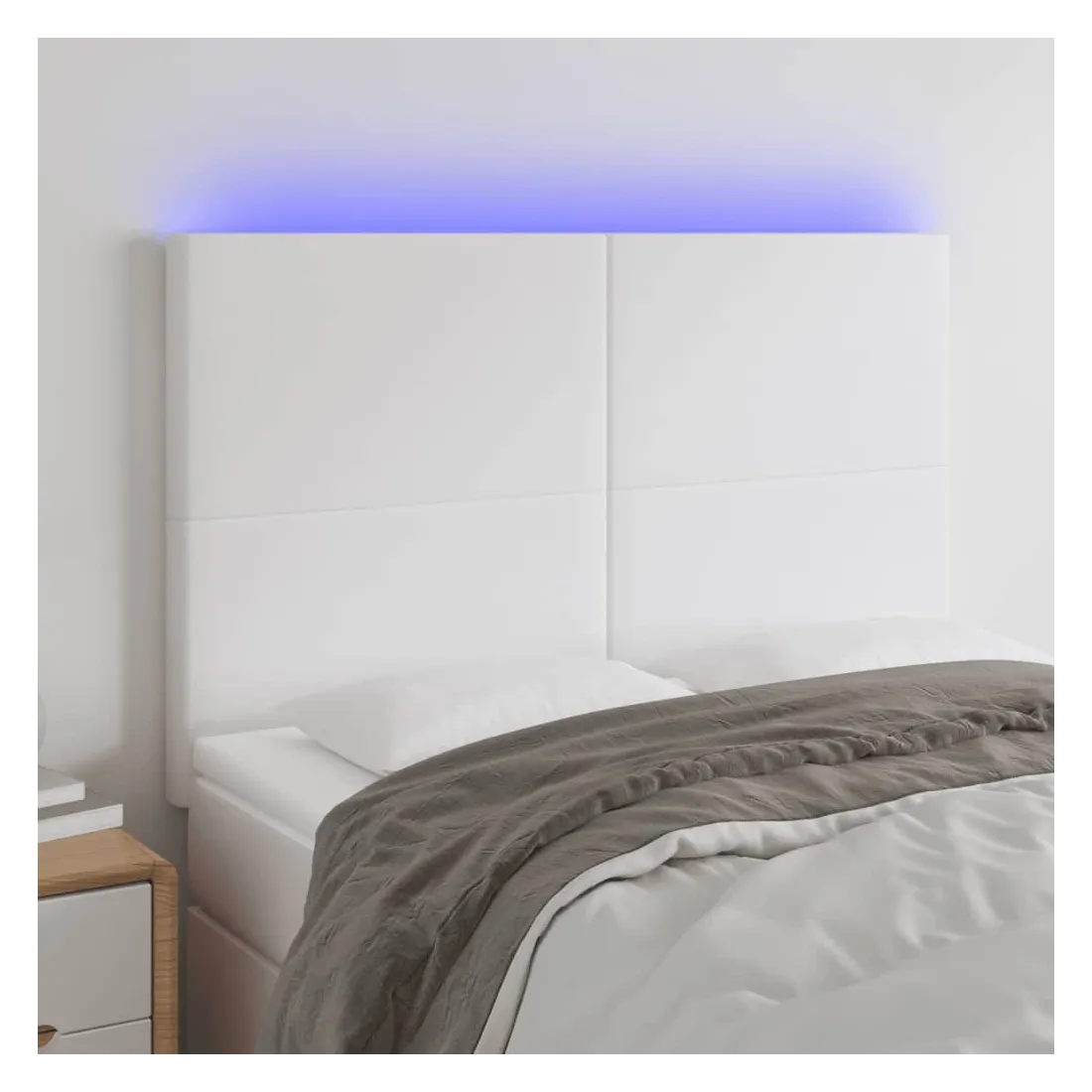 Cette tête de lit à LED classique, au design élégant, donne à votre cadre de lit une touche de modernité étonnante et convient parfaitement à toute chambre à coucher. Similicuir durable : le similicuir de qualité supérieure est un matériau très durable. Il est résistant aux taches, ce qui le rend facile à nettoyer avec un chiffon humide. La surface lisse donne également un aspect luxueux et la beauté du cuir véritable.LED colorée : apportez de l'éclairage dans l'obscurité avec des lumières LED colorées !Hauteur réglable : la tête de lit est réglable en hauteur selon vos préférences.Excellent soutien : la tête de lit vous offre un excellent soutien du dos lorsque vous êtes assis dans votre lit pour lire ou regarder la télévision.Bande à LED découpable : cette bande à LED flexible peut être ajustée en longueur. Le symbole des ciseaux indique où la bande peut être coupée en toute sécurité sans l'endommager. Remarque :Seule la partie avec un symbole de ciseaux peut être coupée et seule la partie avec l'USB continuera à fonctionner comme avant.Chaque produit est livré avec un manuel de montage dans la boîte pour un montage facile.Ce produit est doté d'un connecteur USB, mais la source d'alimentation certifiée de USB 5V n'est pas incluse.