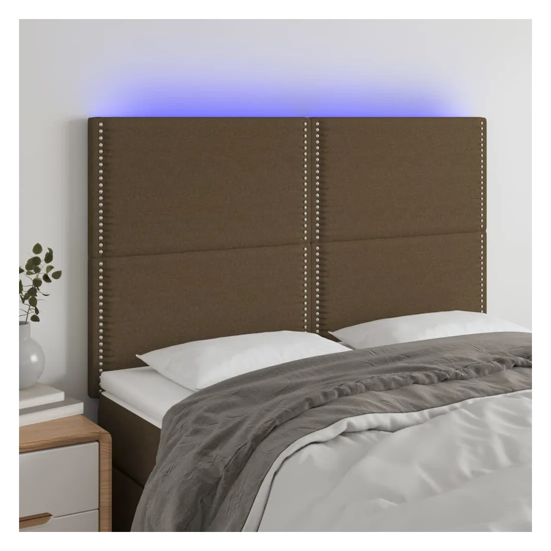 Tête de lit à LED Marron foncé 144x5x118/128 cm Tissu