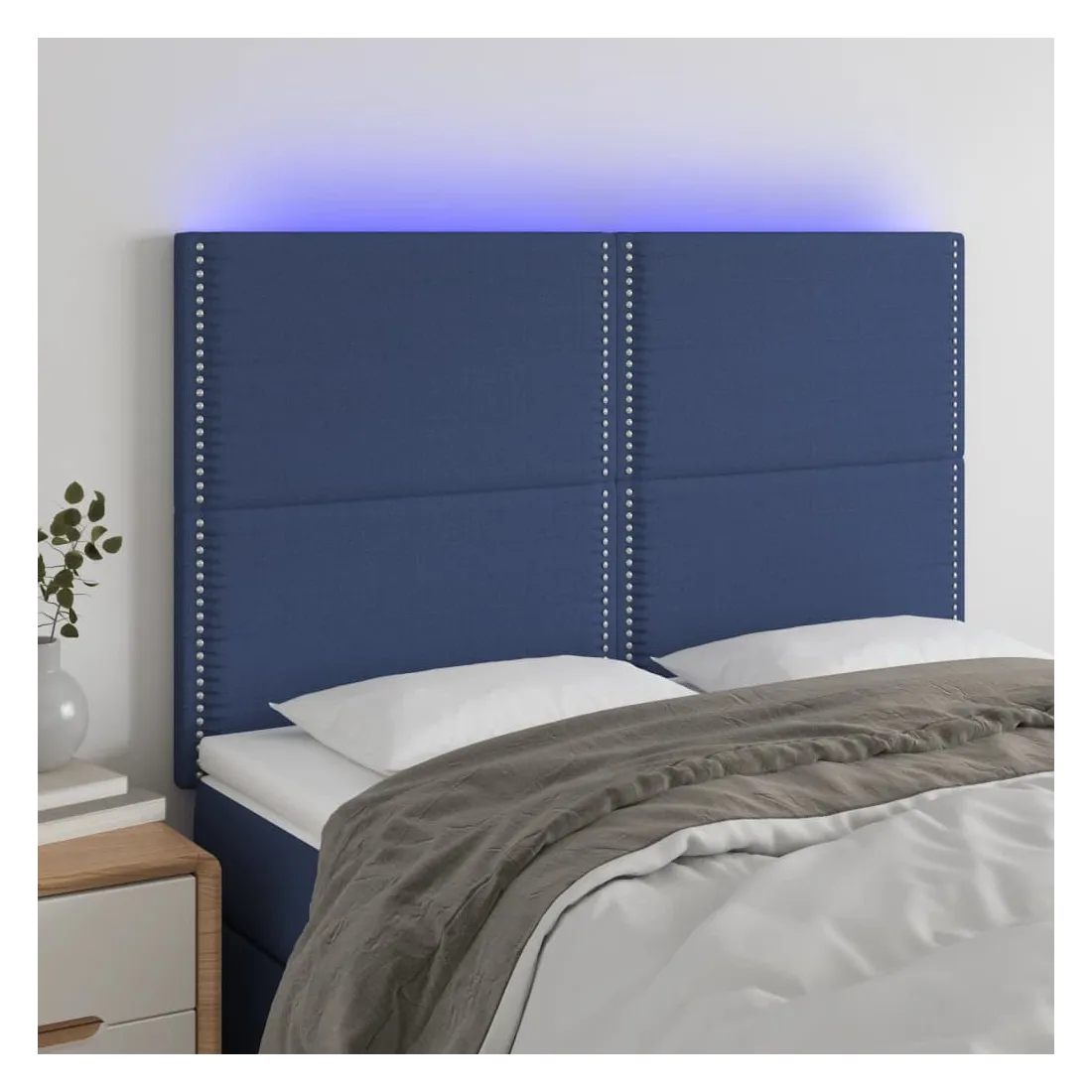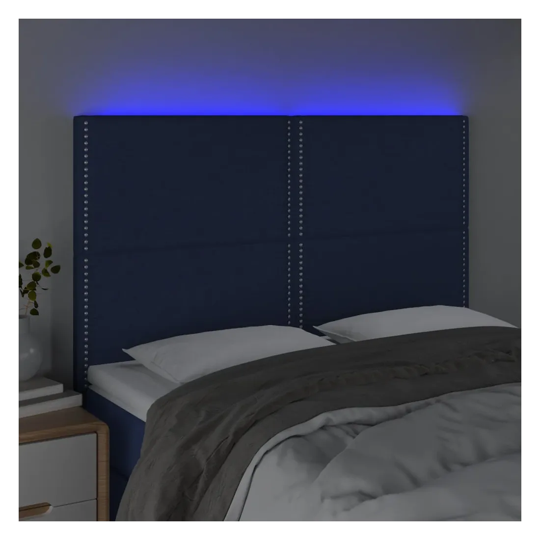 Cette tête de lit à LED classique, au design élégant, donne à votre cadre de lit une touche de modernité étonnante et convient parfaitement à toute chambre à coucher. Tissu durable : le tissu présente un aspect simple et épuré, et il est respirant et durable.LED colorée : apportez de l'éclairage dans l'obscurité avec des lumières LED colorées !Hauteur réglable : la tête de lit est réglable en hauteur selon vos préférences.Excellent soutien : la tête de lit vous offre un excellent soutien du dos lorsque vous êtes assis dans votre lit pour lire ou regarder la télévision.Bande à LED découpable : cette bande à LED flexible peut être ajustée en longueur. Le symbole des ciseaux indique où la bande peut être coupée en toute sécurité sans l'endommager. Remarque :Seule la partie avec un symbole de ciseaux peut être coupée et seule la partie avec l'USB continuera à fonctionner comme avant.Chaque produit est livré avec un manuel de montage dans la boîte pour un montage facile.Ce produit est doté d'un connecteur USB, mais la source d'alimentation certifiée de USB 5V n'est pas incluse.