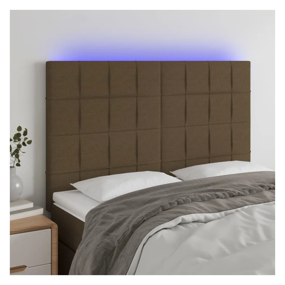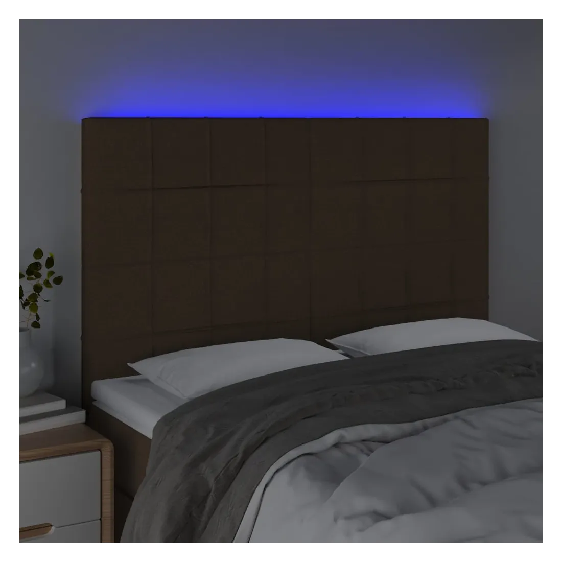 Tête de lit à LED Marron foncé 144x5x118/128 cm Tissu