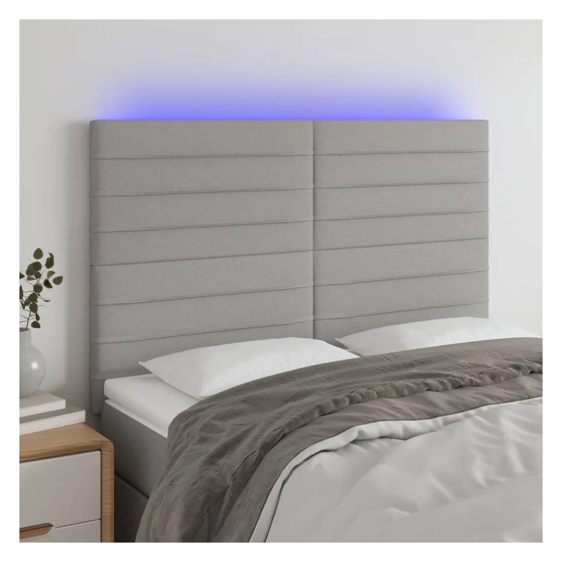 Tête de lit à LED Gris clair 144x5x118/128 cm Tissu